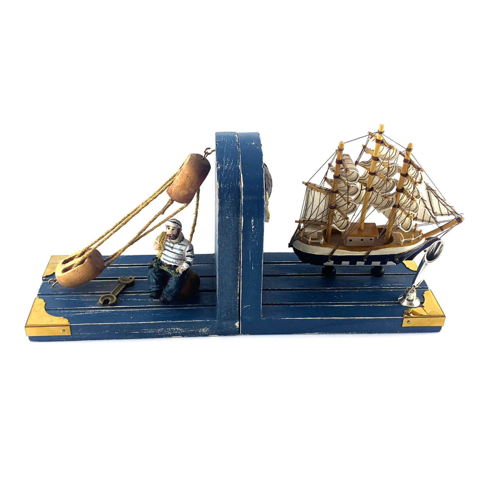"Корабель з моряком" це декор, який складається з двох блоків і може бути використаний для прикраси полиці, столу або навіть як власник для книг.