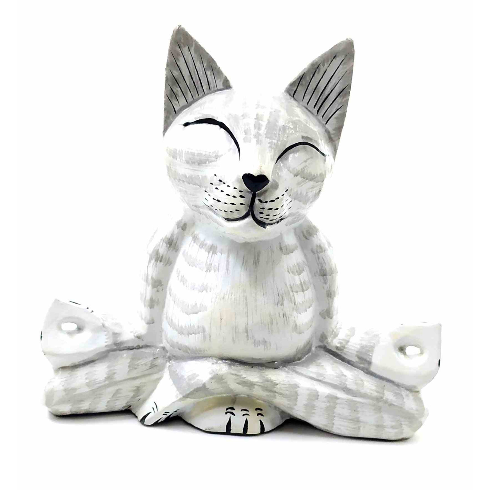 Кіт у позі лотоса дерев'яний білий (15х15х18 см)