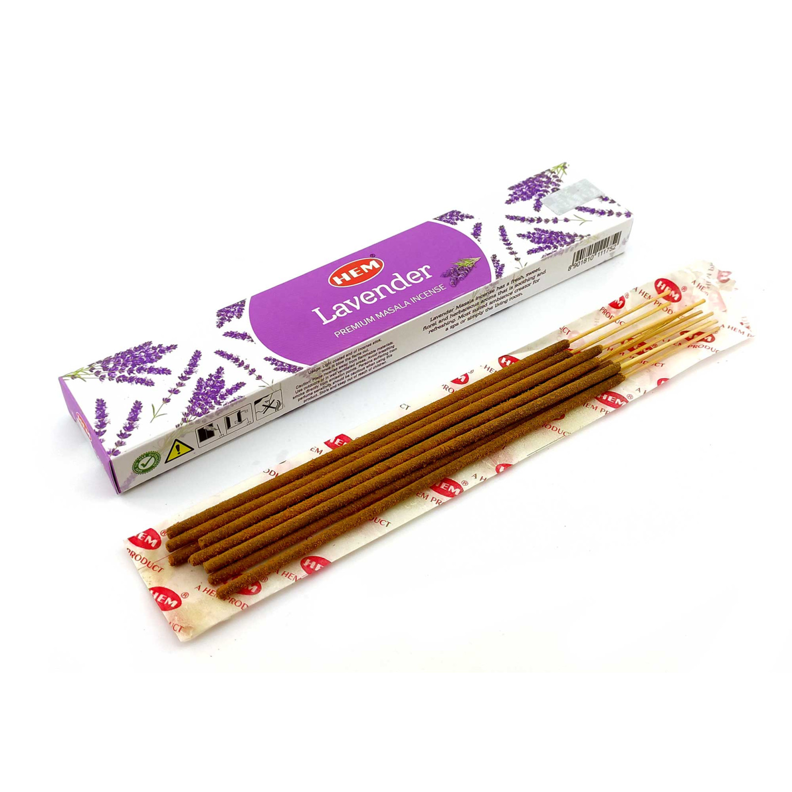 "Lavender Masala" "Лаванда" - це натуральні пахощі на бамбуковій основі, створені із суміші трави лаванди та інших натуральних інгредієнтів. Упаковка містить приблизно 10 паличок, кожна довжиною близько 20 см, і важить 15 грам.