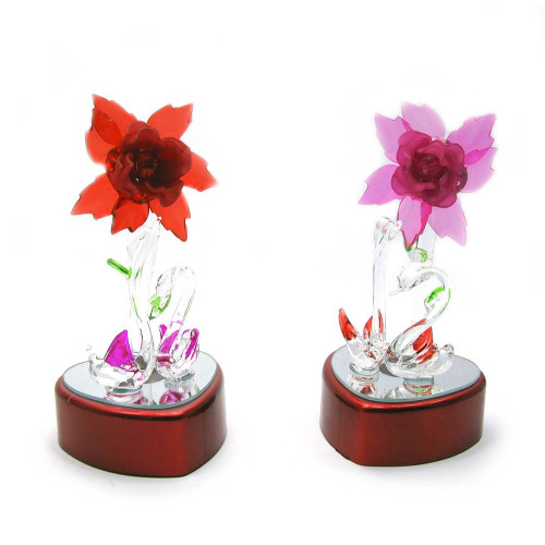 Лебеді кришталеві з квіткою з підсвічуванням (12х6х6,5 см)
