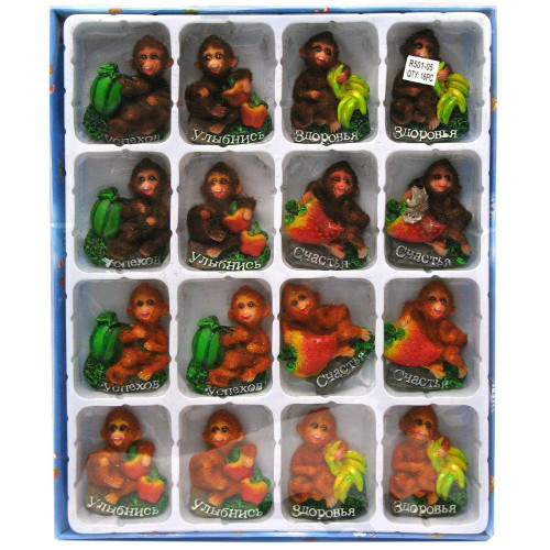 Характеристики Магніт на холодильник "Мавпочка з фруктами" (16 шт / уп) (7х5х2 см)