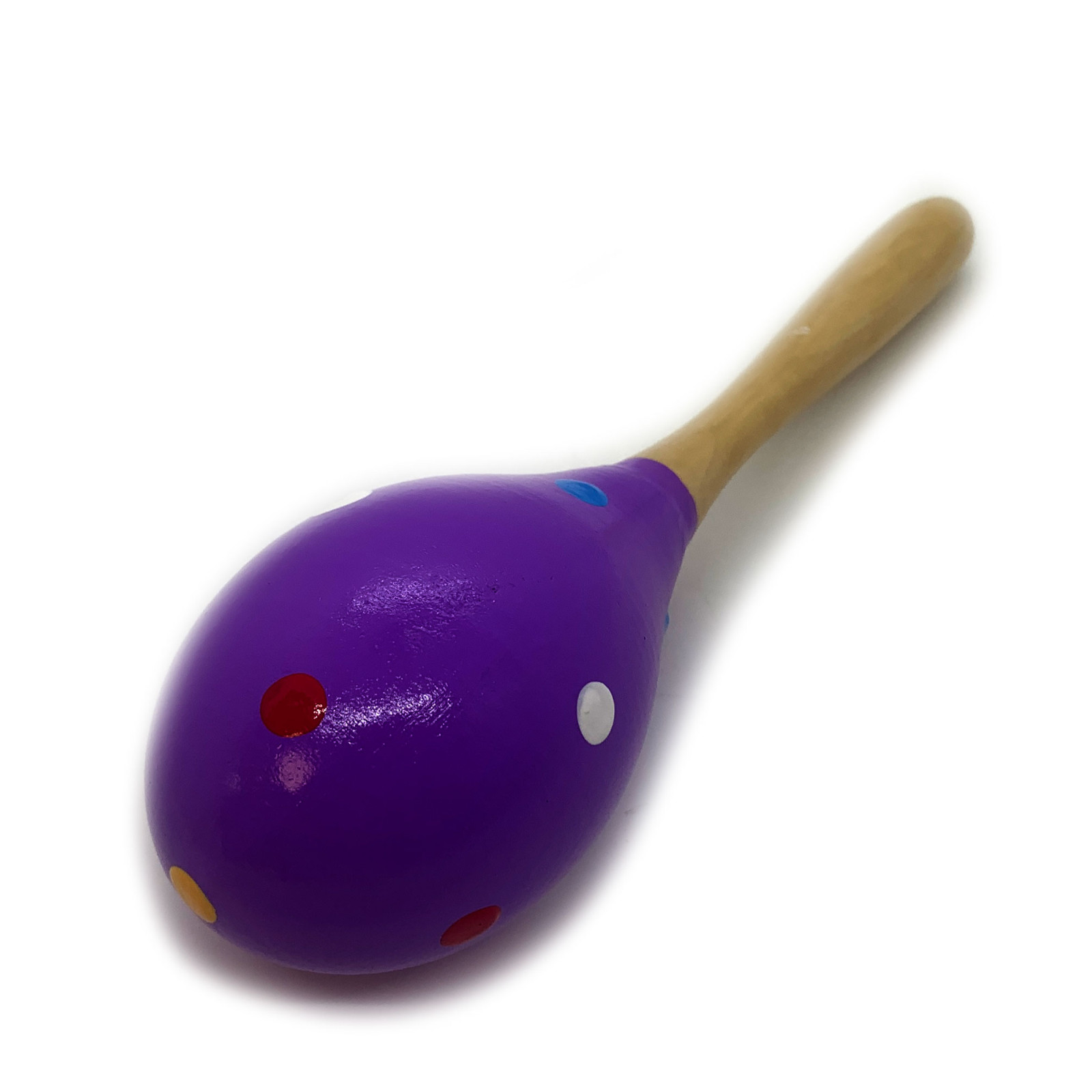 Яскравий маракас бузкового кольору в кольоровий горох додасть різноманітності візуального досвіду, а також підкреслить грайливість та веселий настрій інструменту.