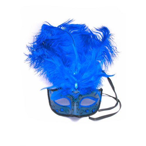 Опис Маска венеціанська з пір'ям синя (25х16х5 см)