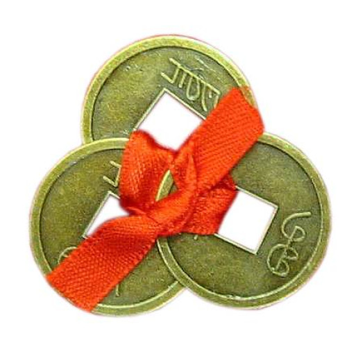 Зв'язка з трьох китайських монет символізують приплив коштів з усіх управлінь і накопичення в одній точці. Такий амулет найчастіше використовується та рекомендується для людей, які займаються торгівлею.