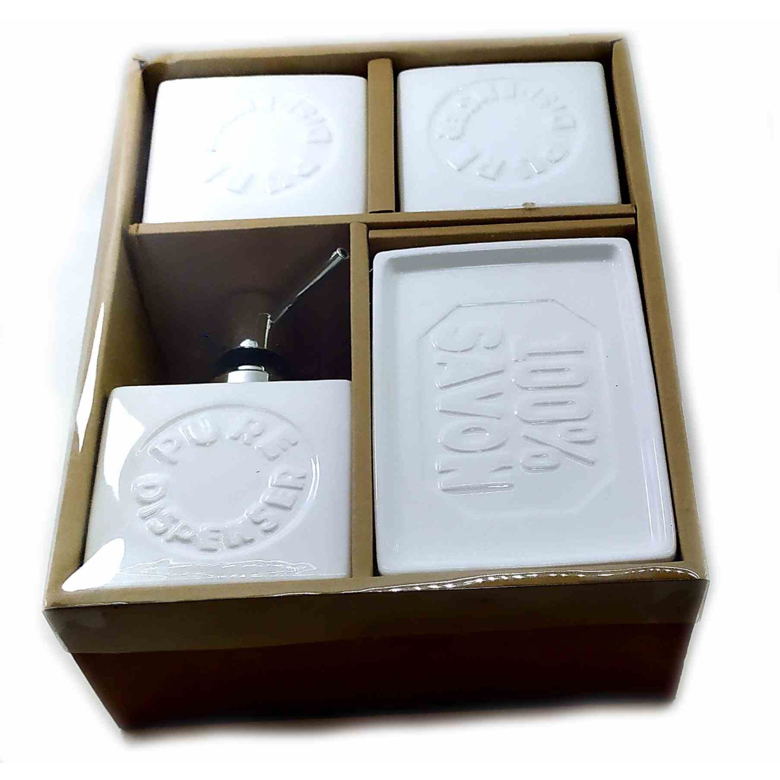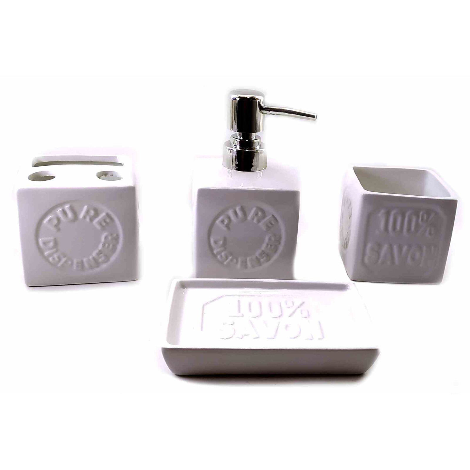 З чарівним набором аксесуарів для ванної кімнати всі предмети будуть на своїх місцях. У керамічний набір входить дозатор для рідкого мила, склянка, органайзер для зубних щіток, мильниця.