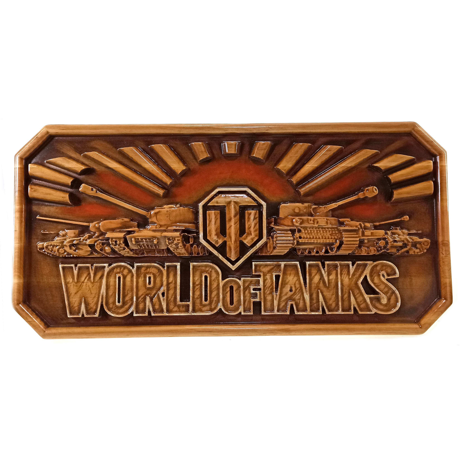 Панно "World of tanks", різьблене, ручний розпис (51,5х25х2,4 см) масив