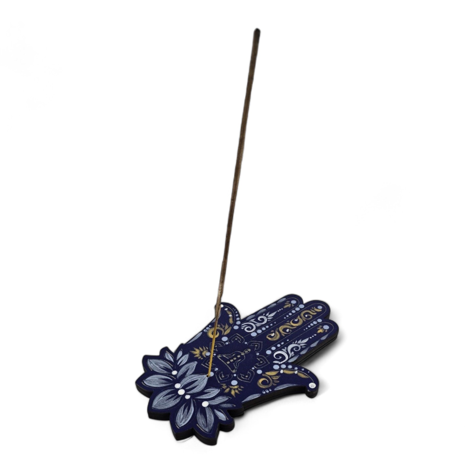 Пориньте в атмосферу східної краси та духовної гармонії з унікальною підставкою під пахощі "7 Чакр" Хамса. Цей вишуканий предмет виконаний з дерева в чудовому синьо-сріблястому відтінку, що робить його не лише функціональним елементом вашого інтер'єру, але й потужним символом захисту та удачі.