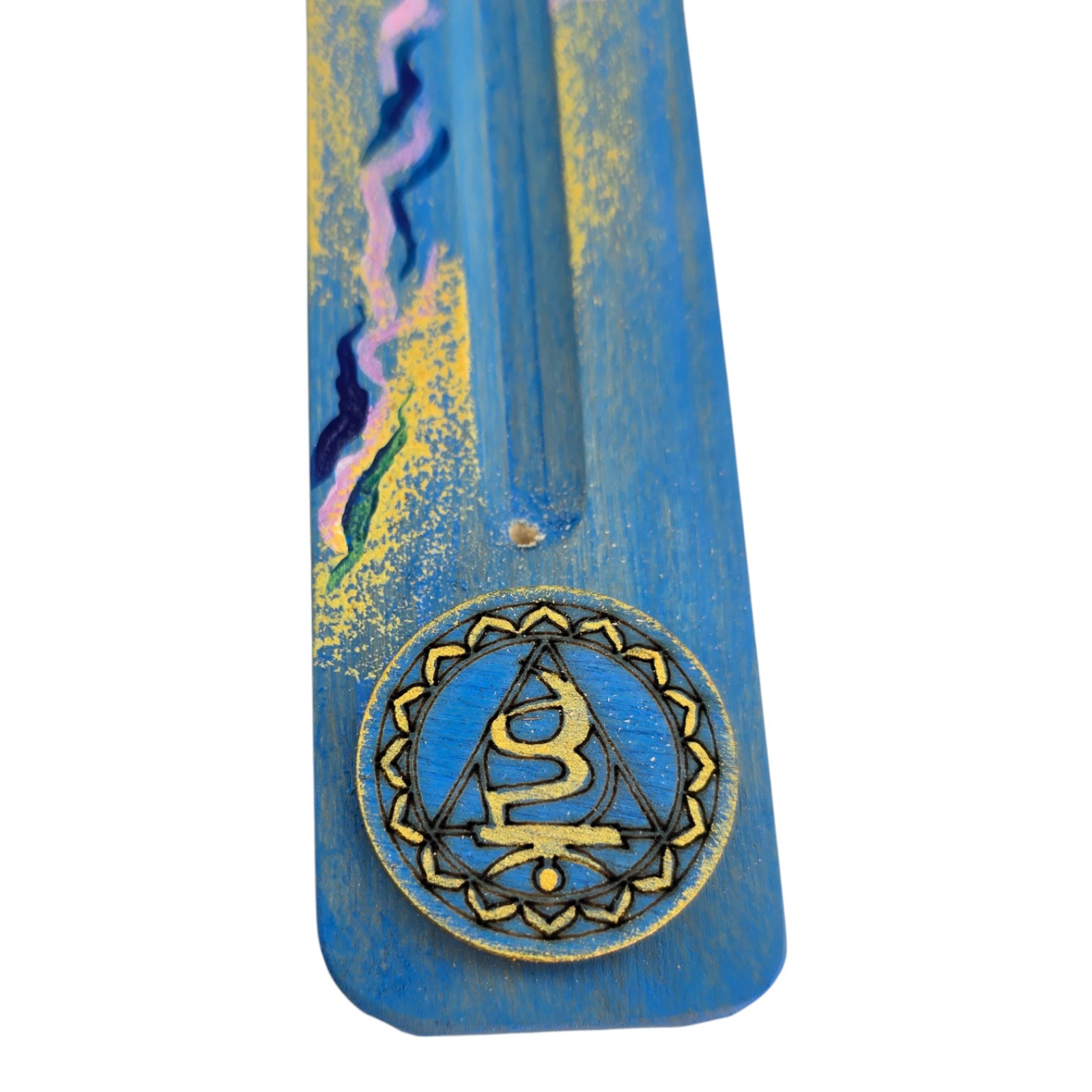 Опис Підставка під пахощі, блакитна "Вішудха" (26х4х0,7 смм), розписано вручну, масив дерева.