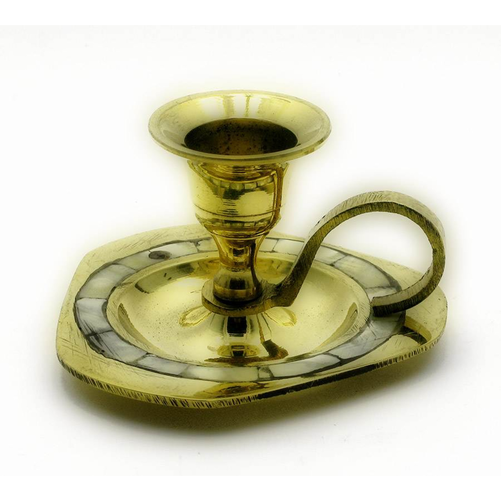 Свічник із ручкою бронзовий з перламутром, свічник, декор для свічок, інтерʼєрний декор