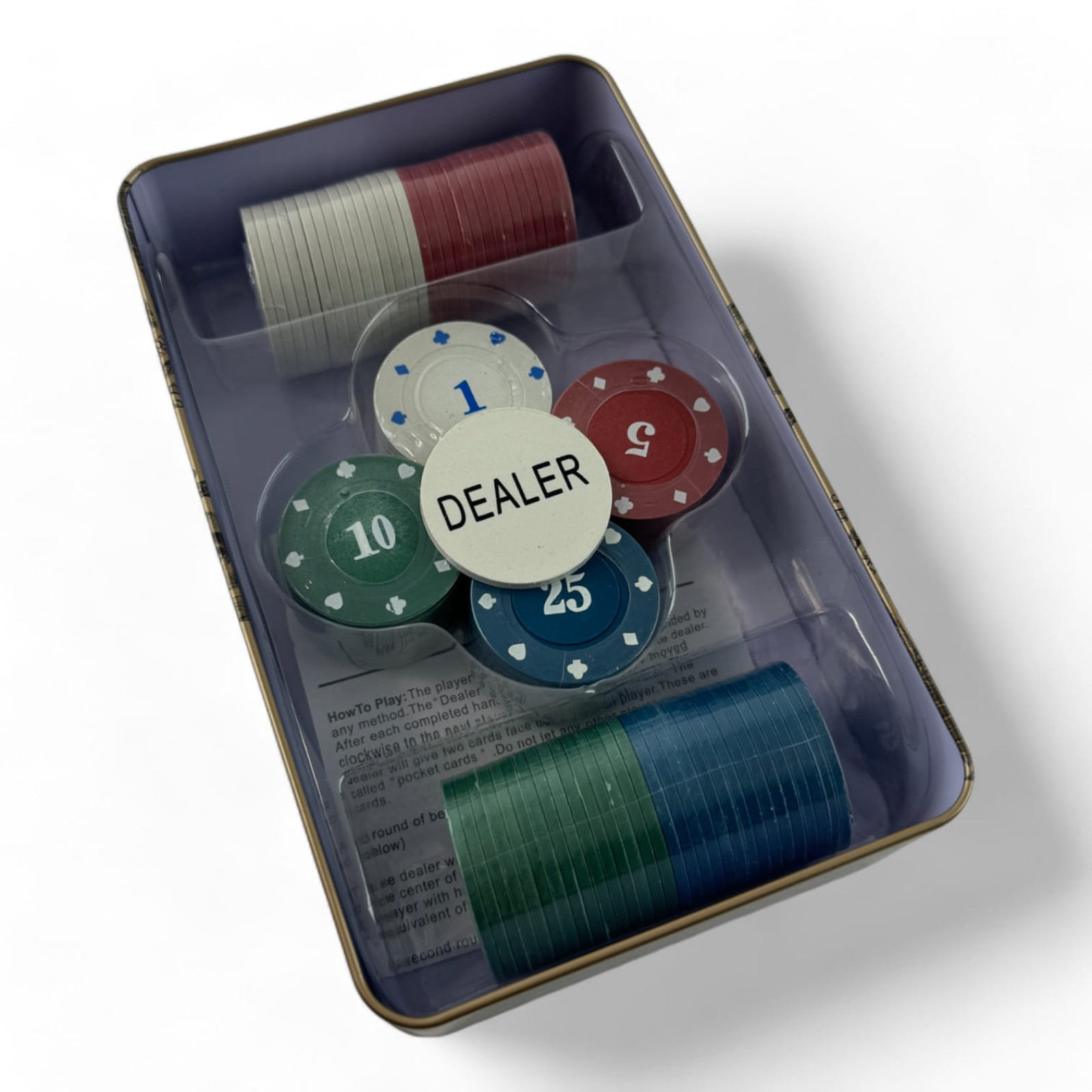 Кількість фішок: Набір містить 100 фішок, що ідеально підходить для невеликих домашніх ігор.