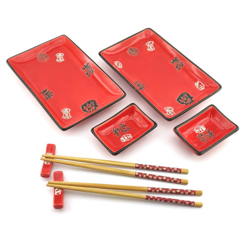 Опис Сервіз для суші "Ієрогліфи на червоному тлі" (2 персони) (28х28, 3х3, 5 см)