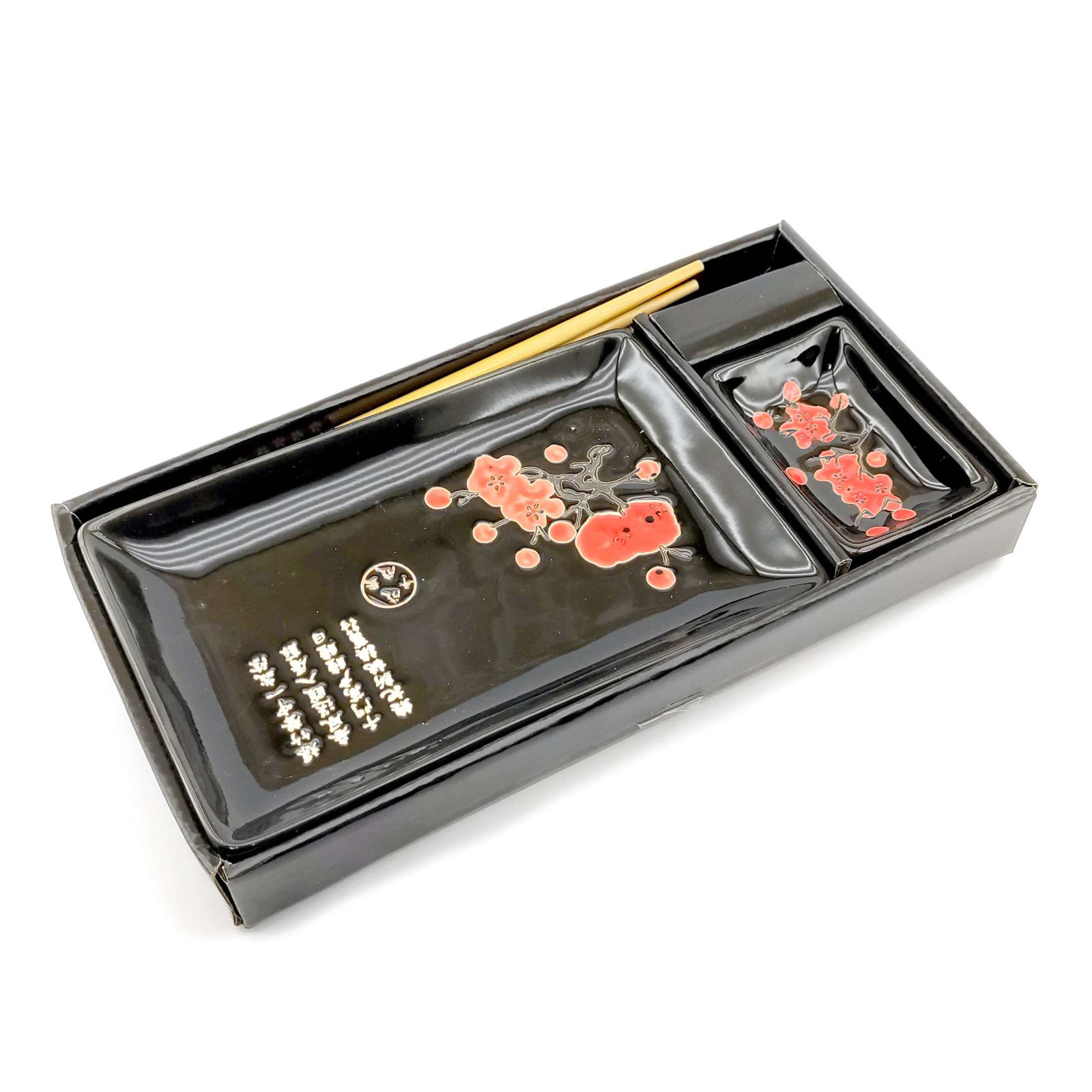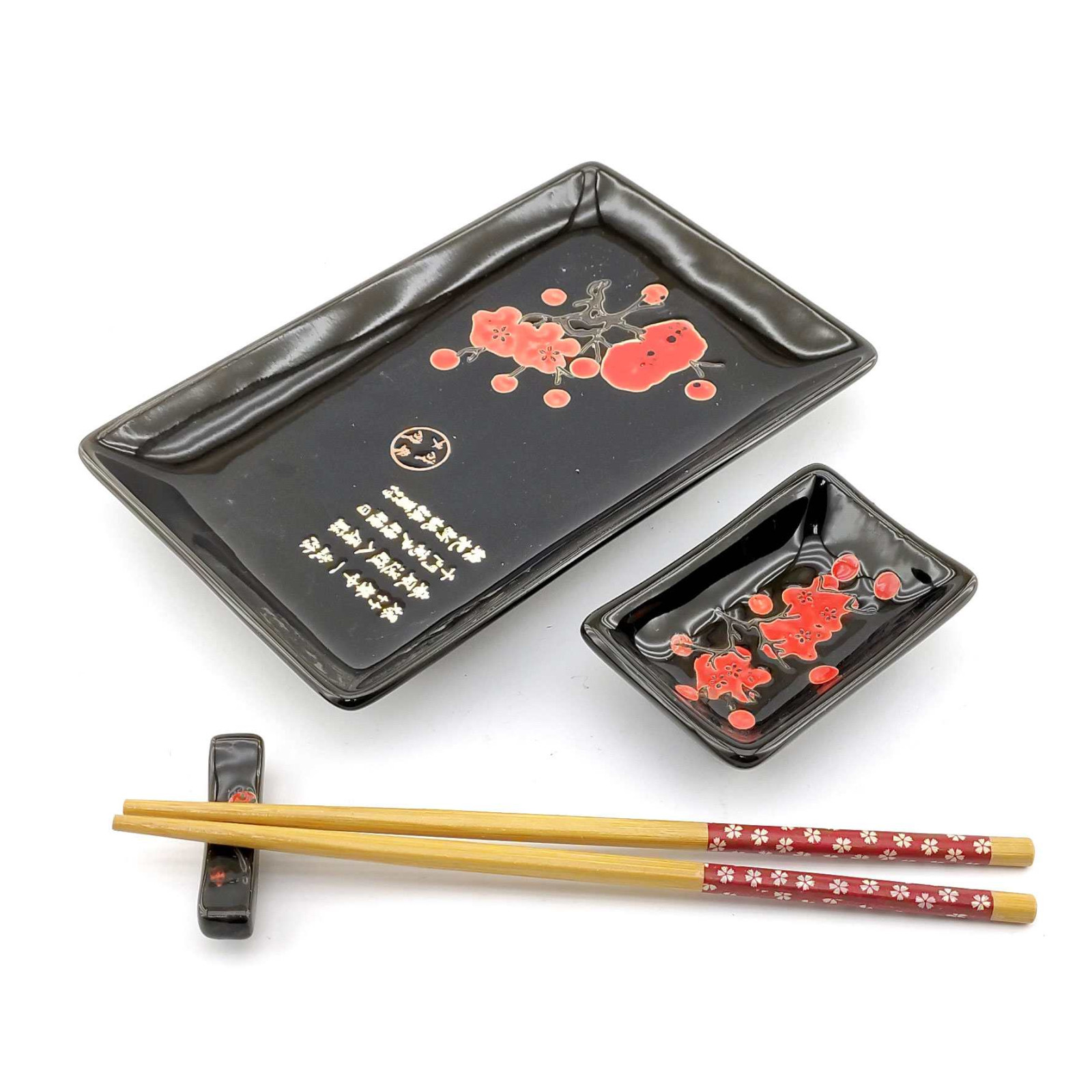 Характеристики Сервіз для суші "Червона сакура на чорному тлі" (28х14 см) (1 особа)