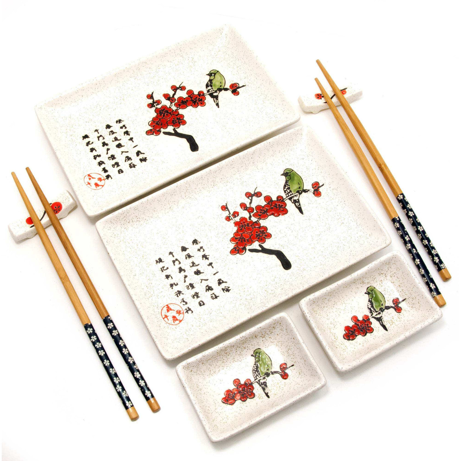 Сервіз для суші "Птах на гілці сакури" (2 персони) (28х28, 3х3, 5 см)