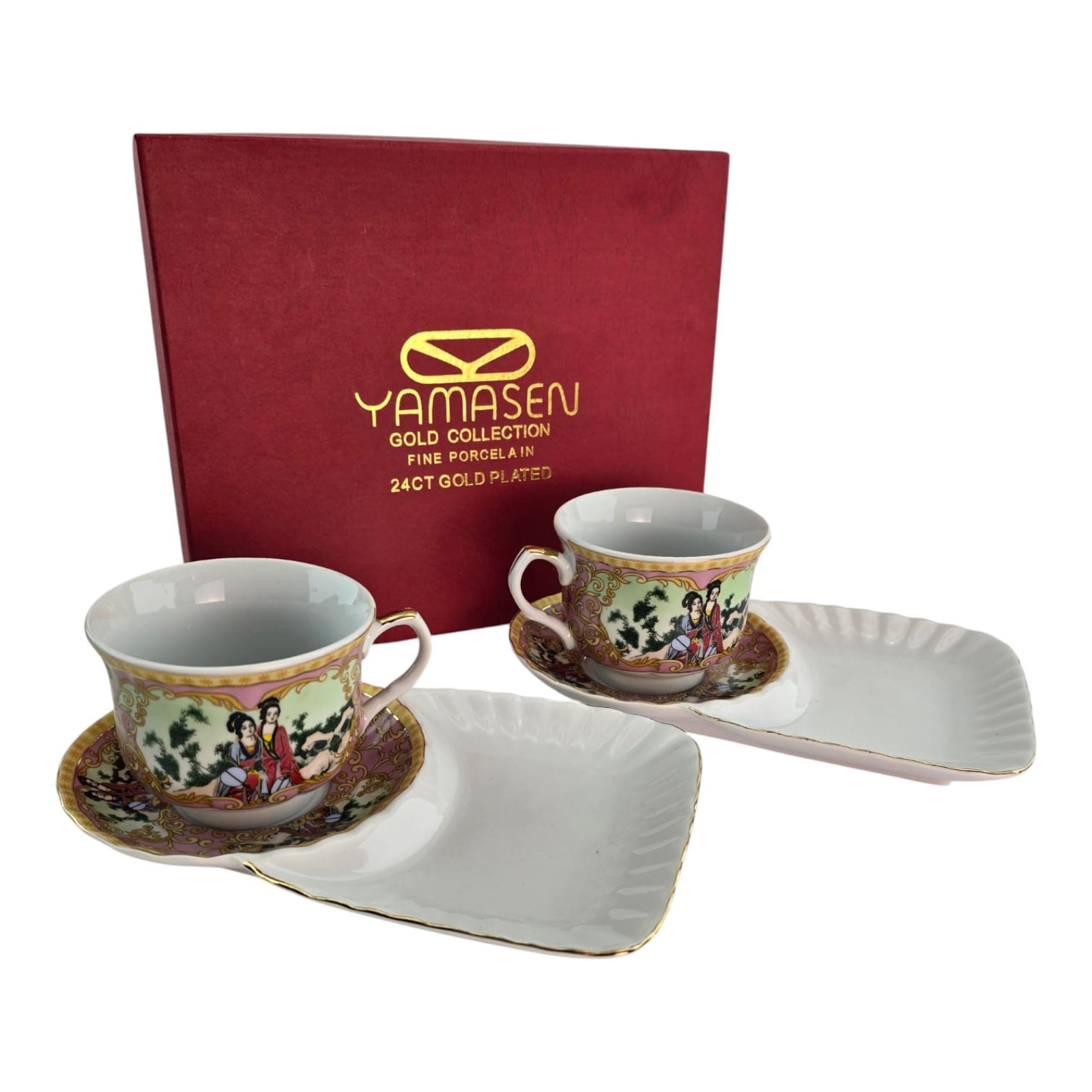 Подарунковий набір із двох порцелянових чашок із блюдцями від Yamasen Gold Collection.