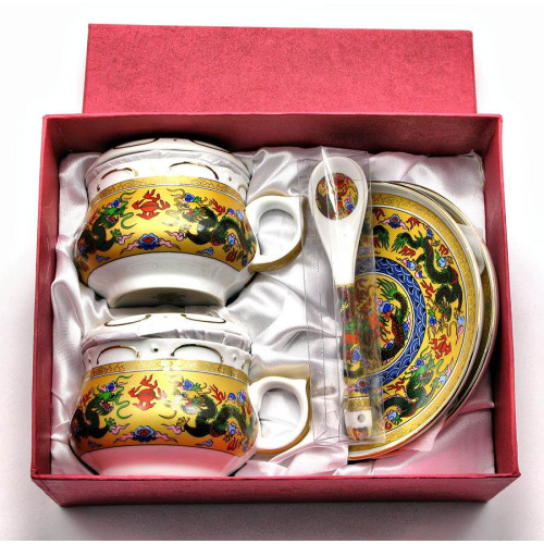Сервіз фарфор (190мл.) (2GBC-A1007-4 SP) 2 чашки + 2 блюдця + 2 ложки "Дракони" (h-6см., d-7см.)