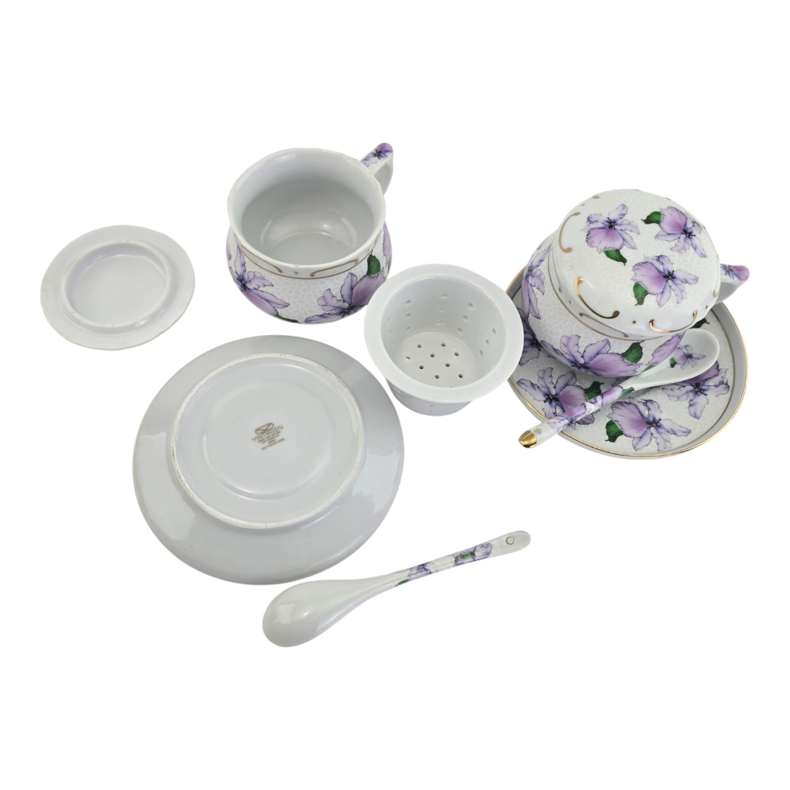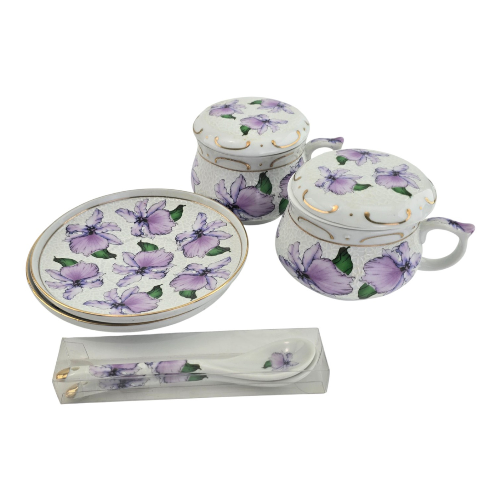 Сервіз фарфор (190мл.) (2GBC-A1093SP) 2 чашки + 2 блюдця + 2 ложки "Квіти на білому тлі" (h-6см., d-7см.)