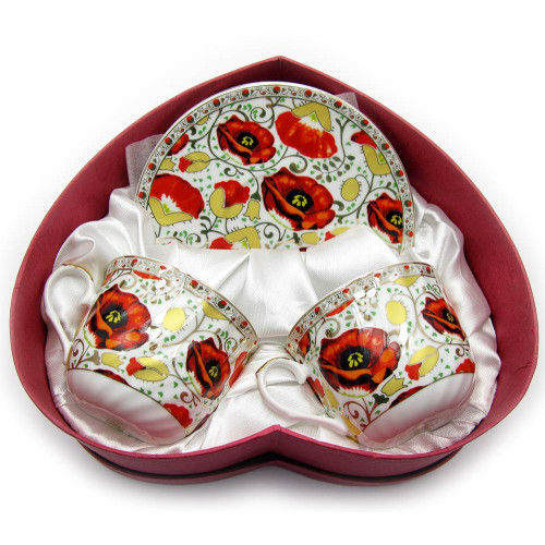 Сервіз порцеляна (2HE1043) 2 чашки +2 блюдця "Маки" (160мл)(h-6см,d-8см,d блюдця 14 см)