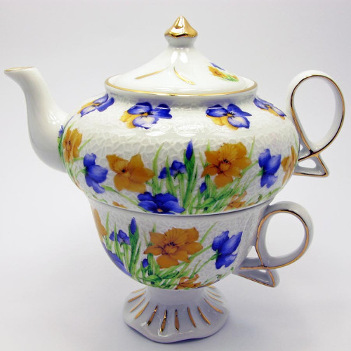 Сервіз порцеляна (3TA1088) 1 чайник + 1 чашка "Жовто сині квіти" (200/400 мл чашка/чайник)