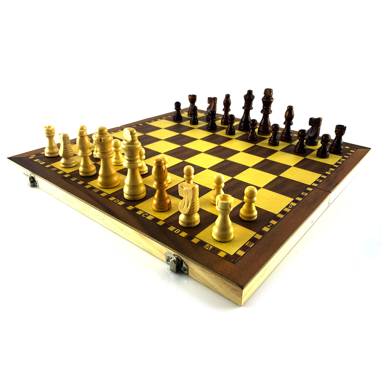 Шахові фігури представлені у двох варіантах дерева – світлого та темного.