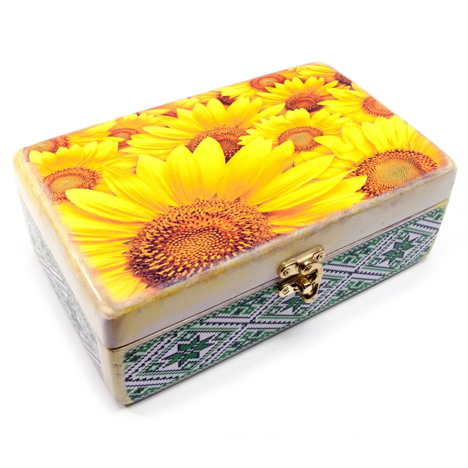 Скринька "Соняшники" дерево на ніжках, масив дерева (20,5×12,5×9 см.)
