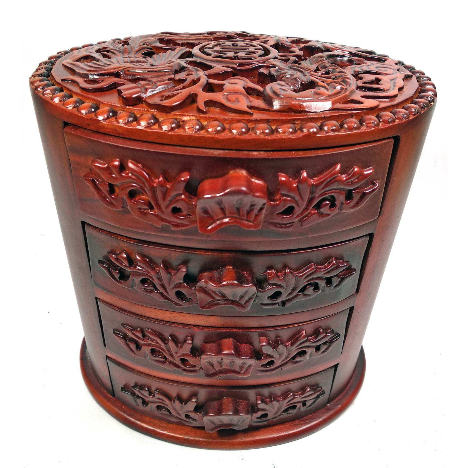 Скринька різьблена для прикрас овальна (18х18х13 см) (В'єтнам)