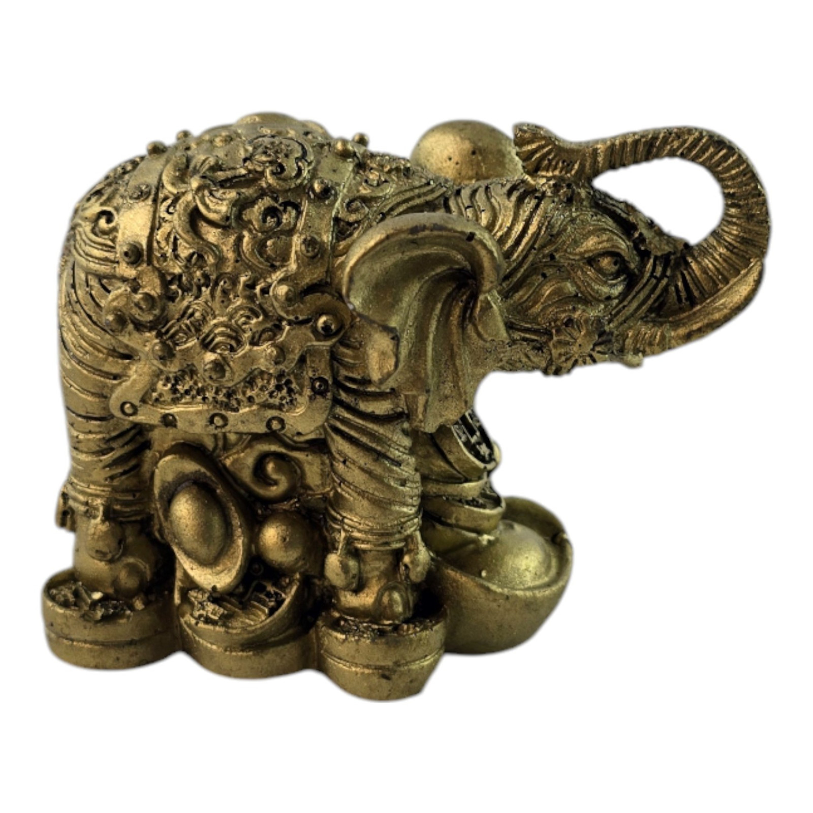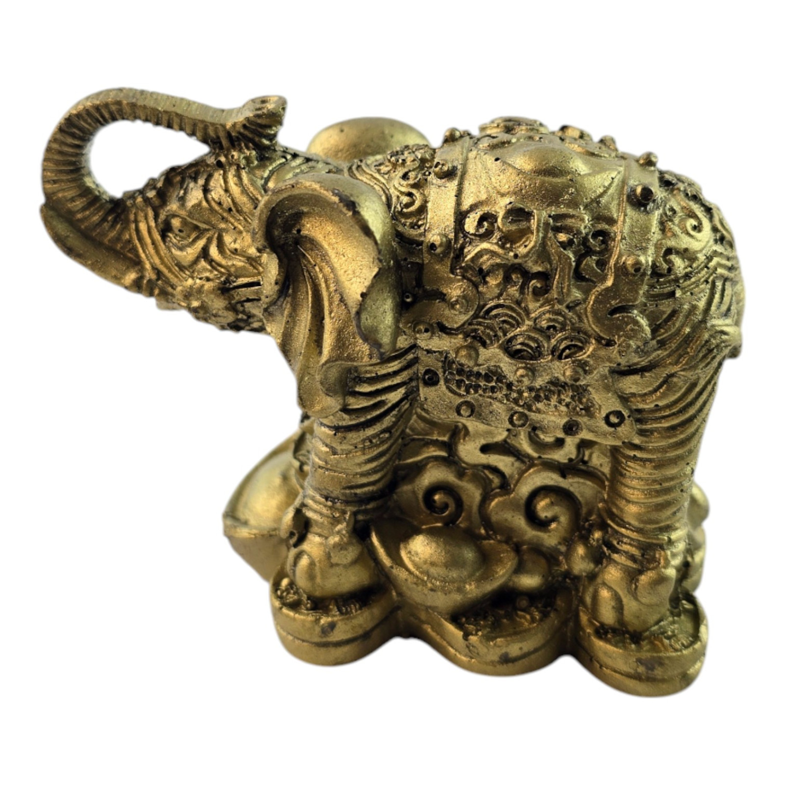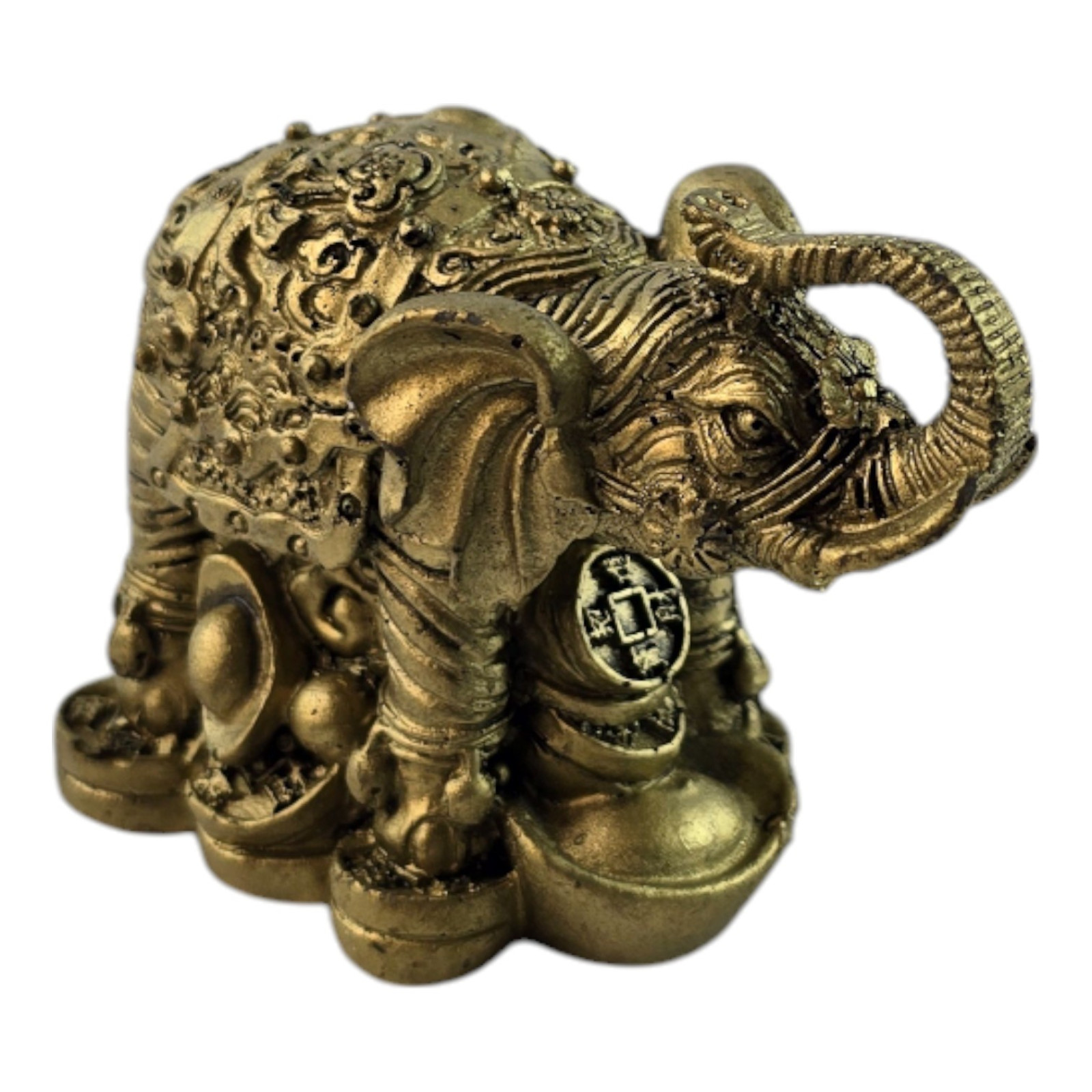 У практиці Фен-Шуй слон є символом мудрості, сили та процвітання. Статуетку такого слона часто розміщують у вітальні чи робочому кабінеті, щоб залучити енергію багатства та захисту. Слон, що стоїть на монетах, особливо символізує фінансовий успіх, тому його рекомендують встановлювати в зоні багатства (наприклад, на сході чи південному сході вашого будинку чи офісу). Компактний розмір дозволяє легко знайти місце для цього талісмана на будь-якій полиці, столі або навіть у невеликій вітрині, приносячи гармонію та процвітання у ваш простір.
