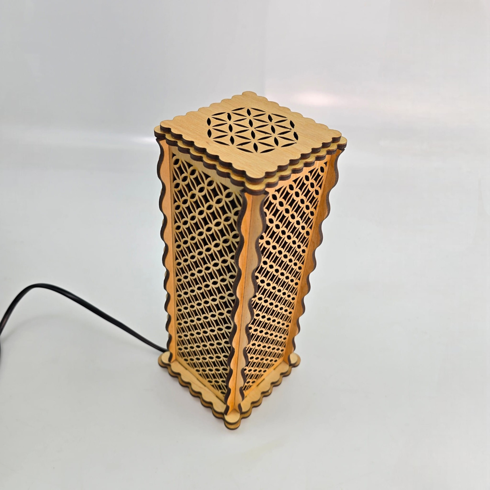 Сакральний дизайн: Візерунок «Квітка життя» на верхній панелі та витончене геометричне різання на стінках створюють магічну гру світла та тіні.