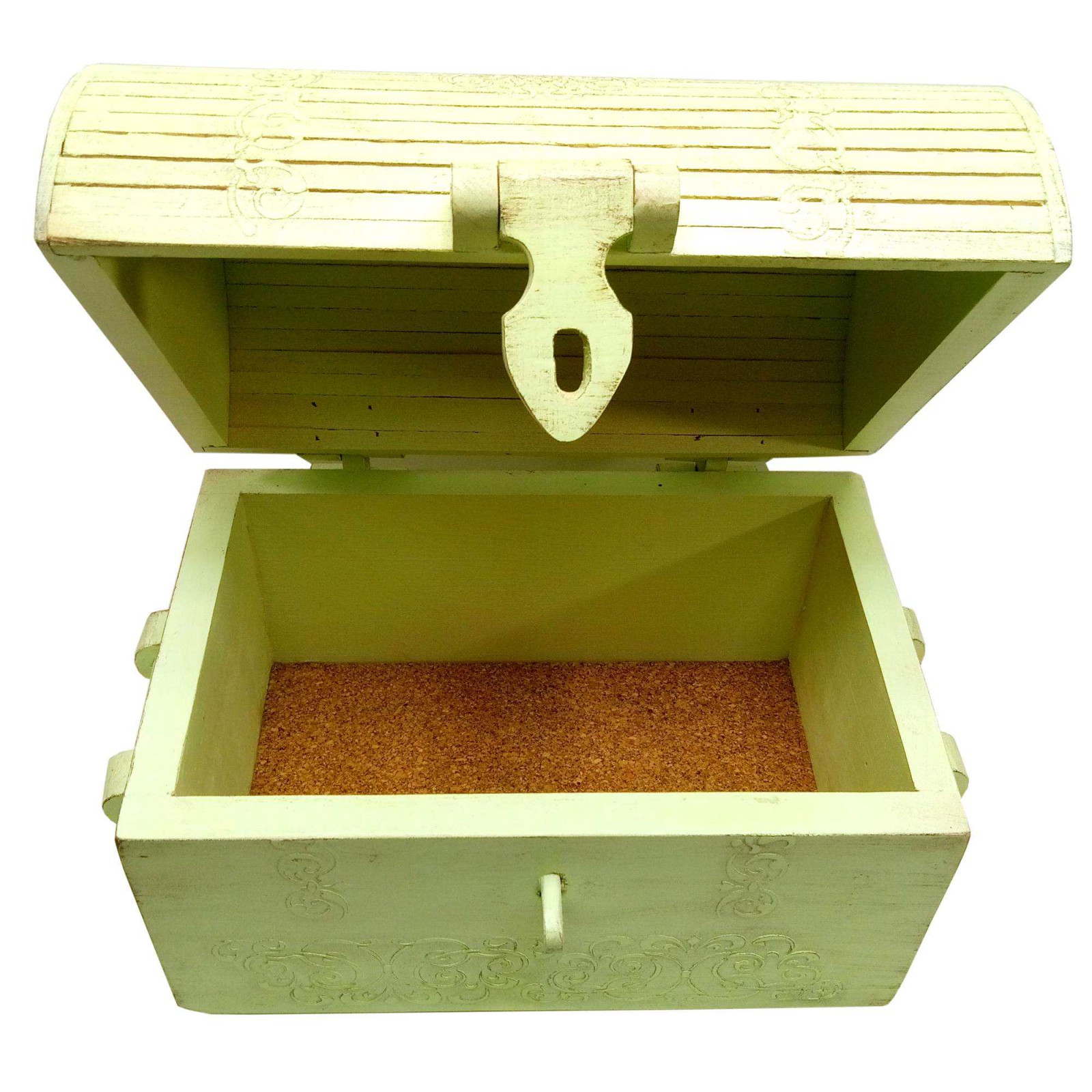 Опис Скриня зелена, замки та ручки з дерева, прикрашена мереживом, масив дерева (34х22х26 см)