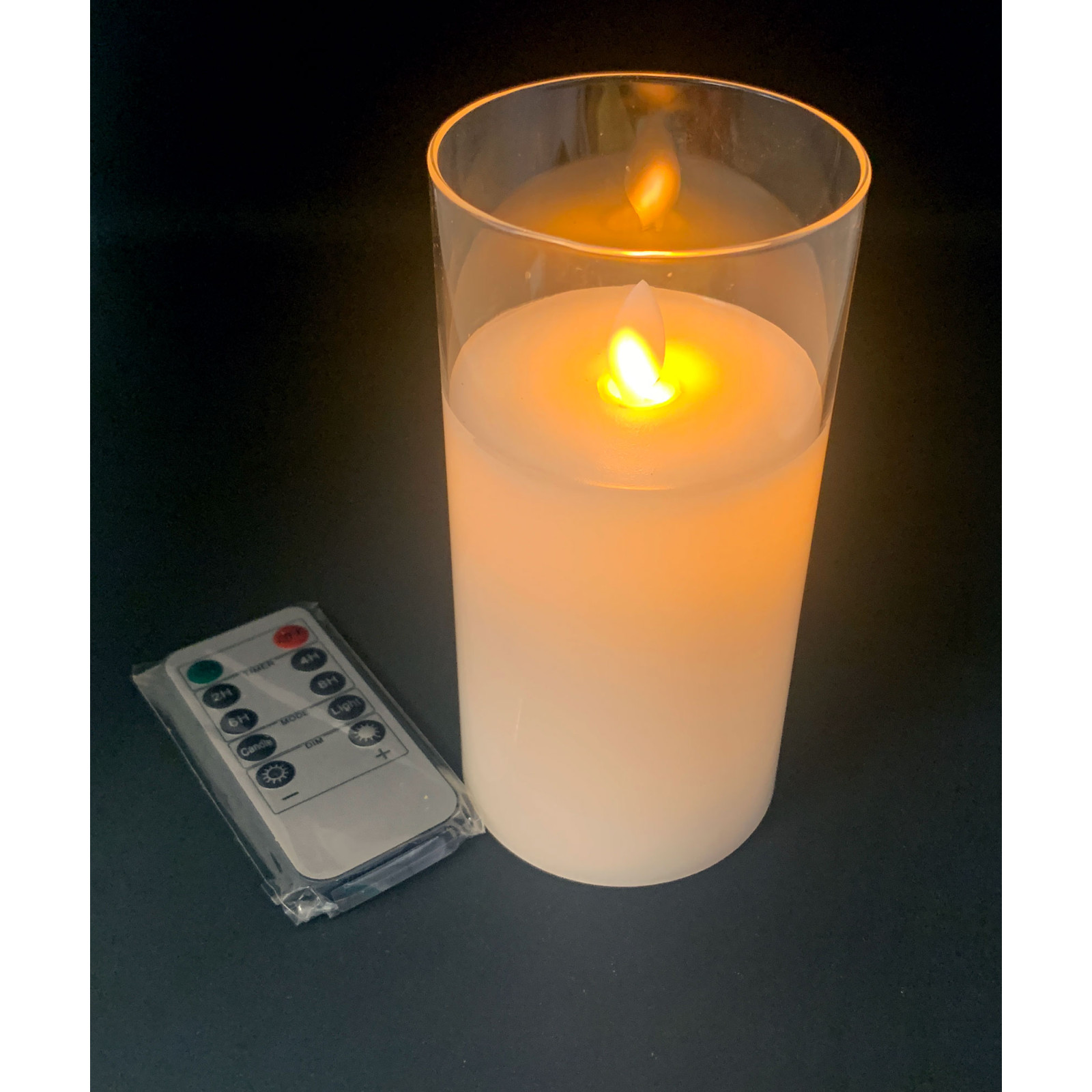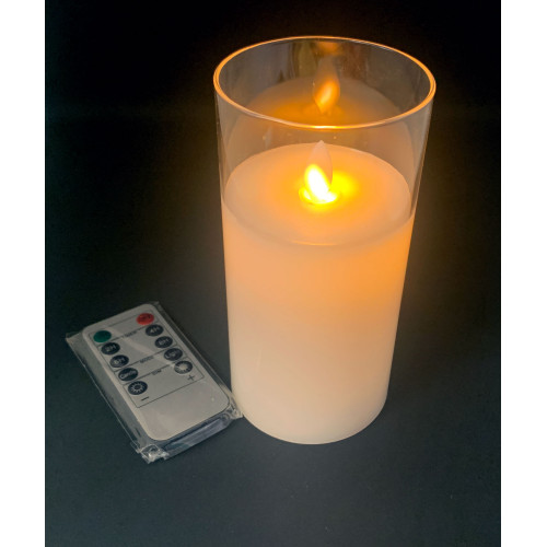 Опис Свічка з Led підсвічуванням з полум'ям, що рухається, і пультом управління (15х7,5х7,5 см)