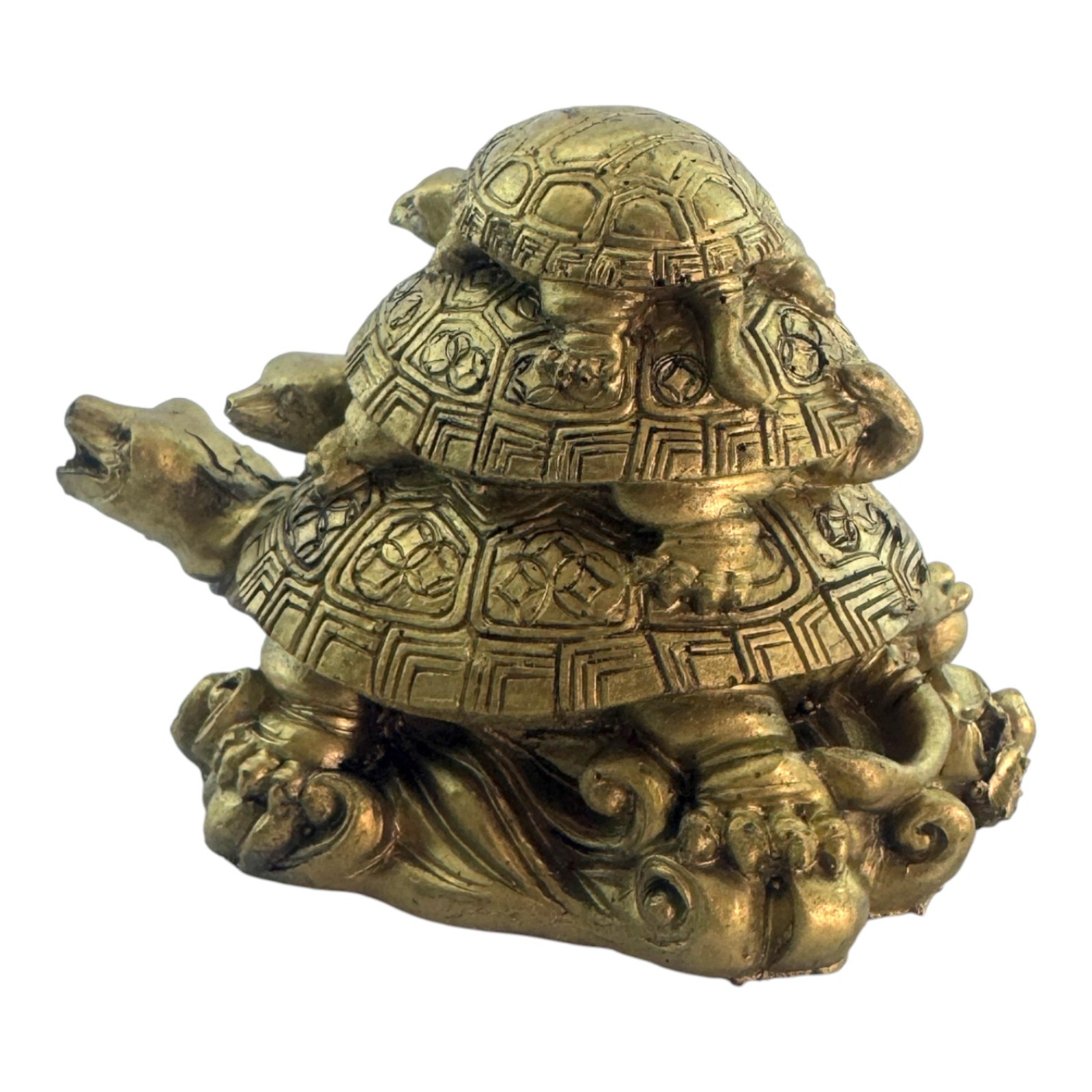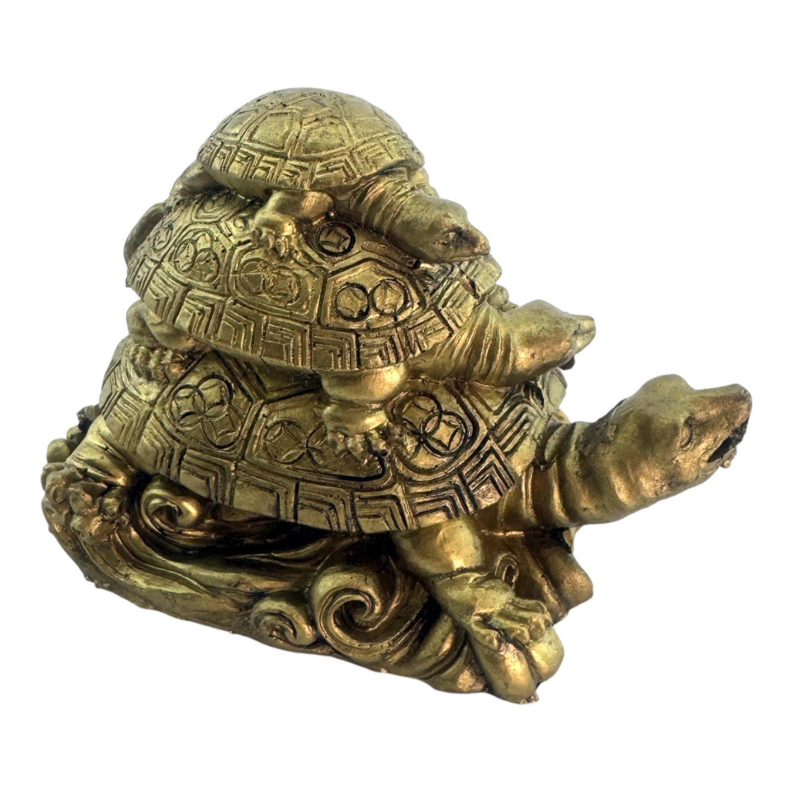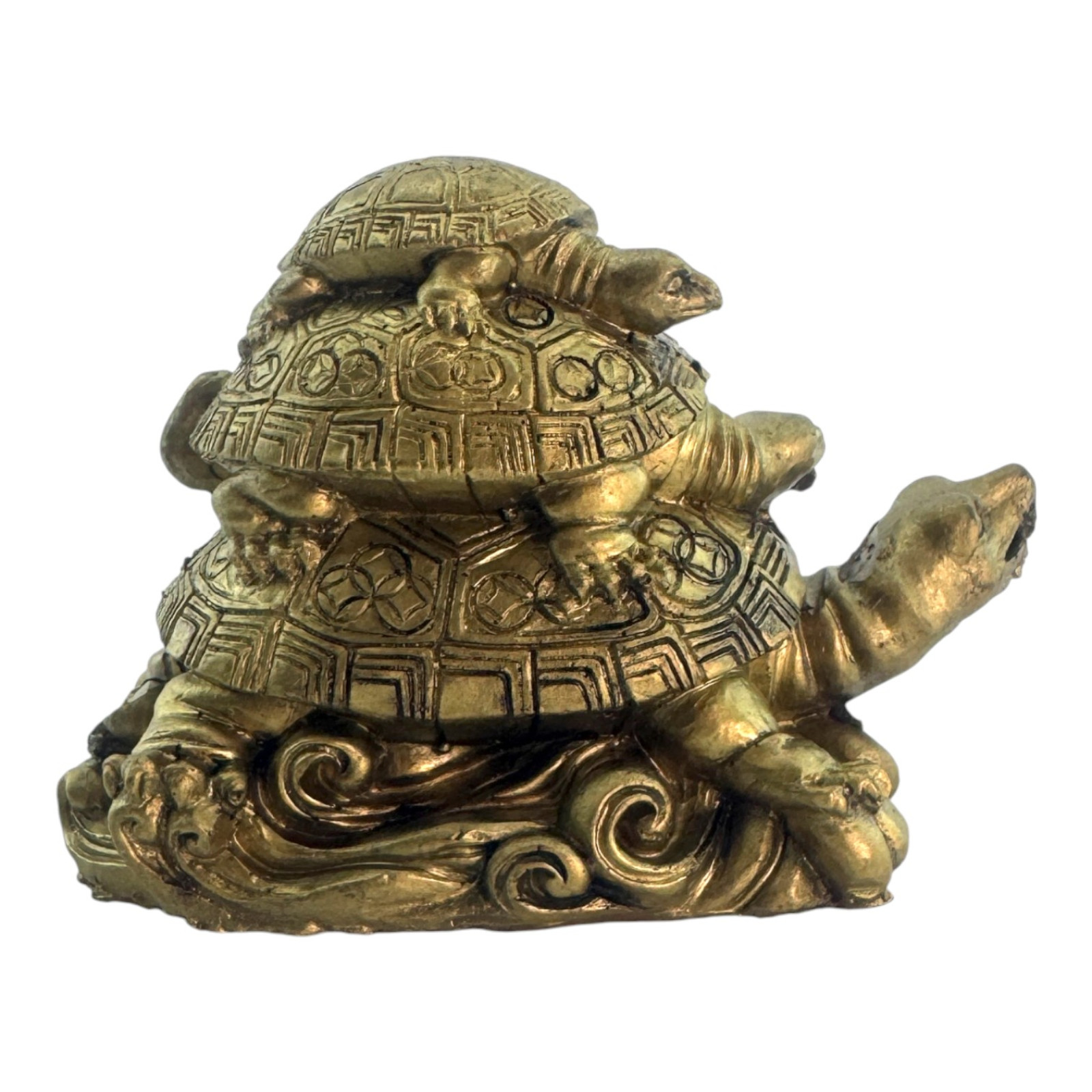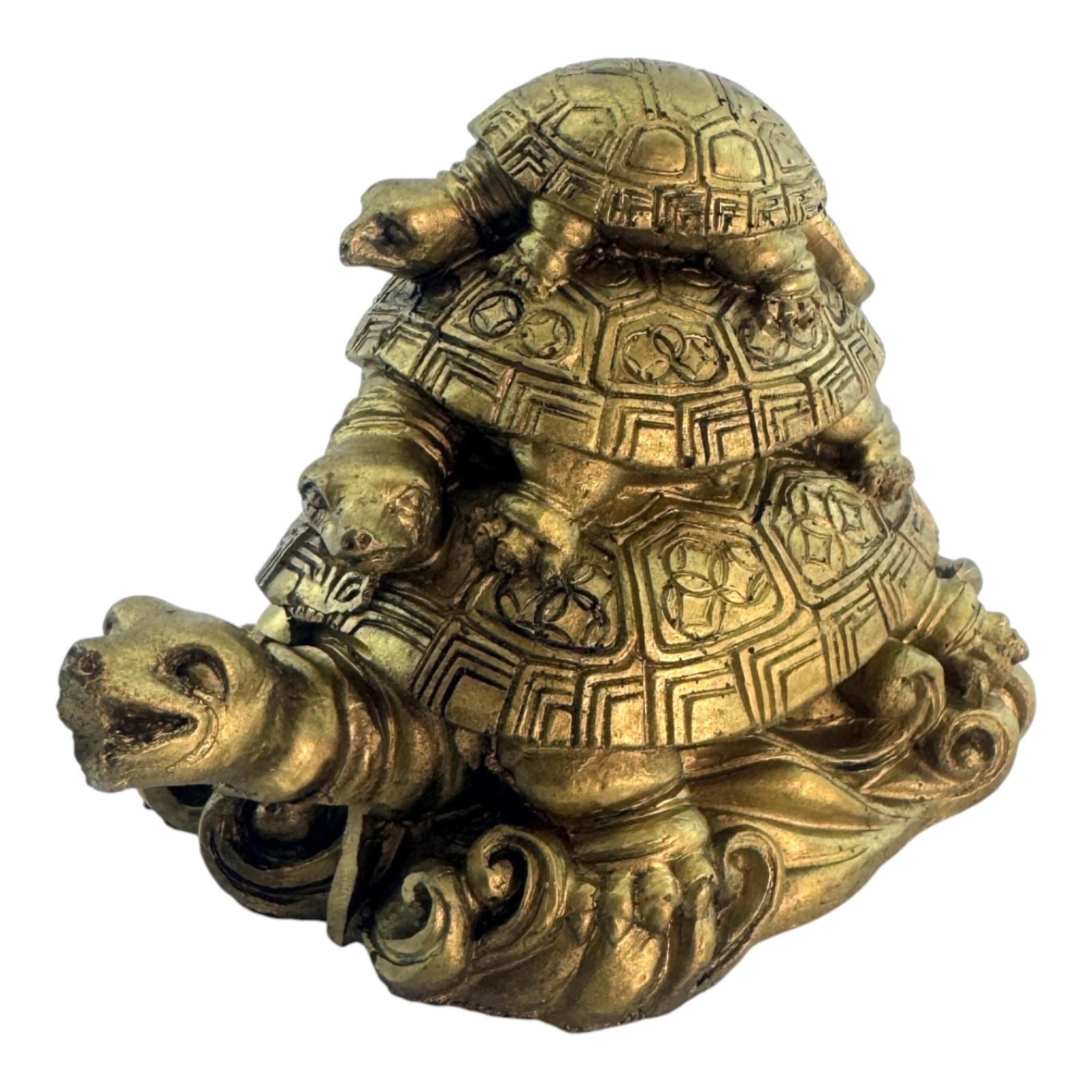 Ця статуетка зображує три черепахи, розташовані один на одному, символізуючи захист і підтримку поколінь. У китайській культурі черепаха асоціюється з довголіттям і мудрістю, а зображення кількох черепах свідчить про зміцнення сім'ї та зв'язок між поколіннями. Така фігурка стане чудовим доповненням до вашої оселі, привносячи атмосферу миру та гармонії.