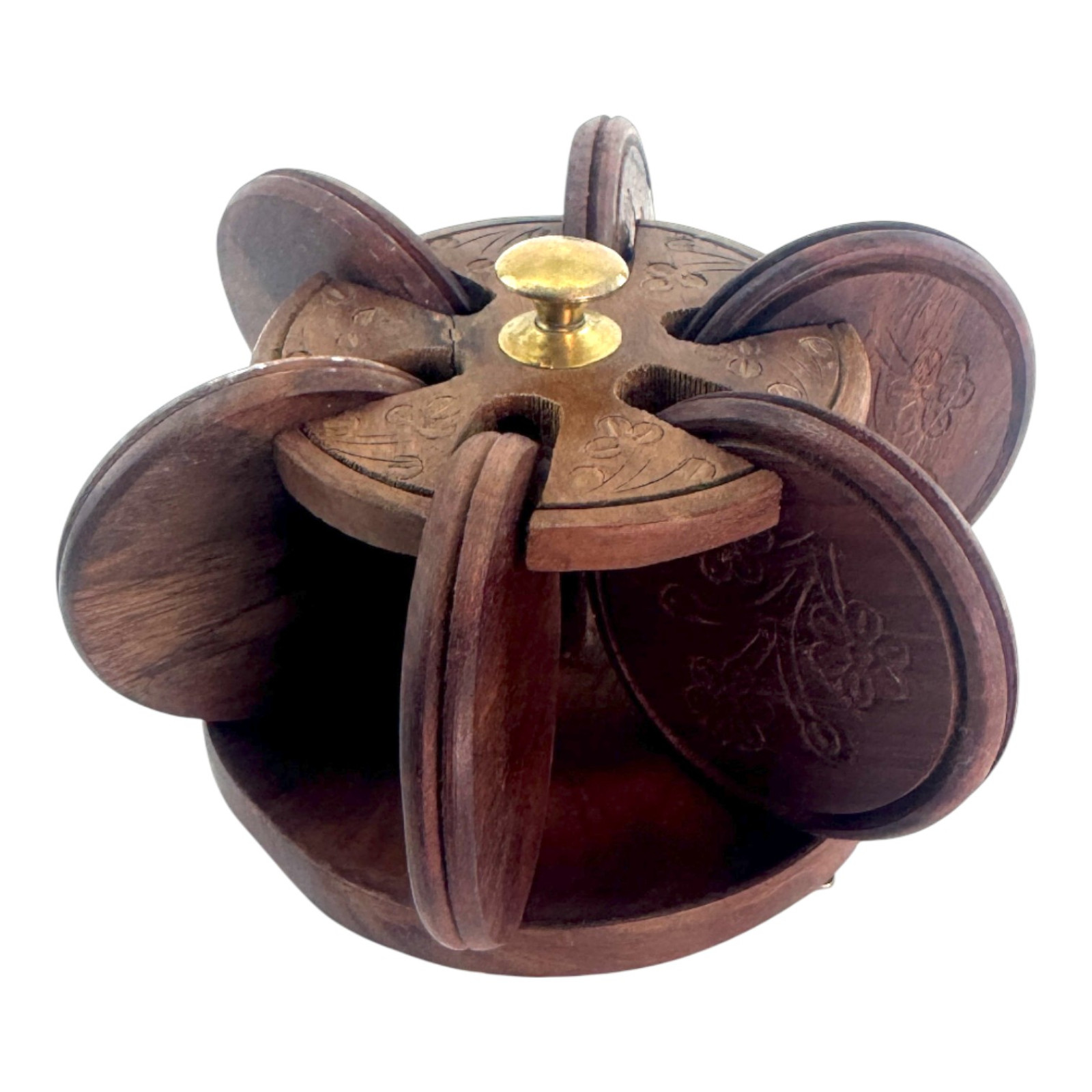 Набір круглих підсклянників із полісандра на підставці — практичне та стильне рішення для вашого інтер'єру чи столу. Підставка виконана з якісного полісандра, надаючи виробу природного теплого відтінку і благородного вигляду. У комплект входить 6 підсклянників, що ідеально підходять для чашок або склянок.