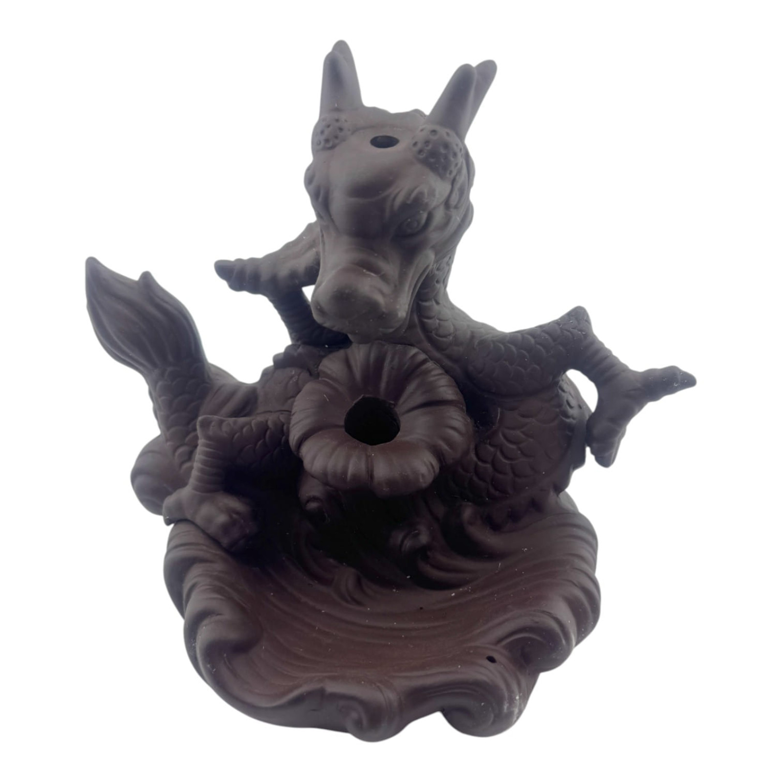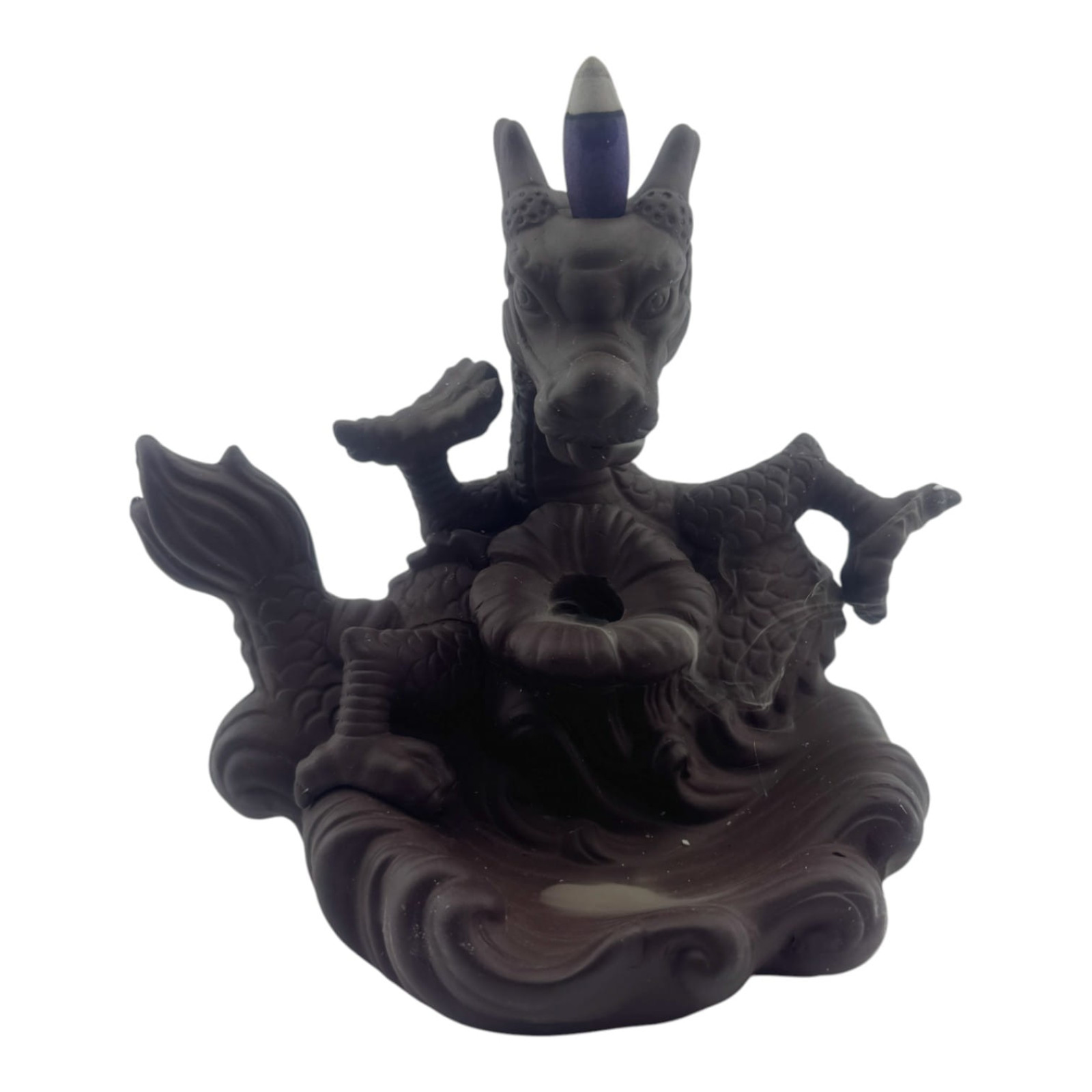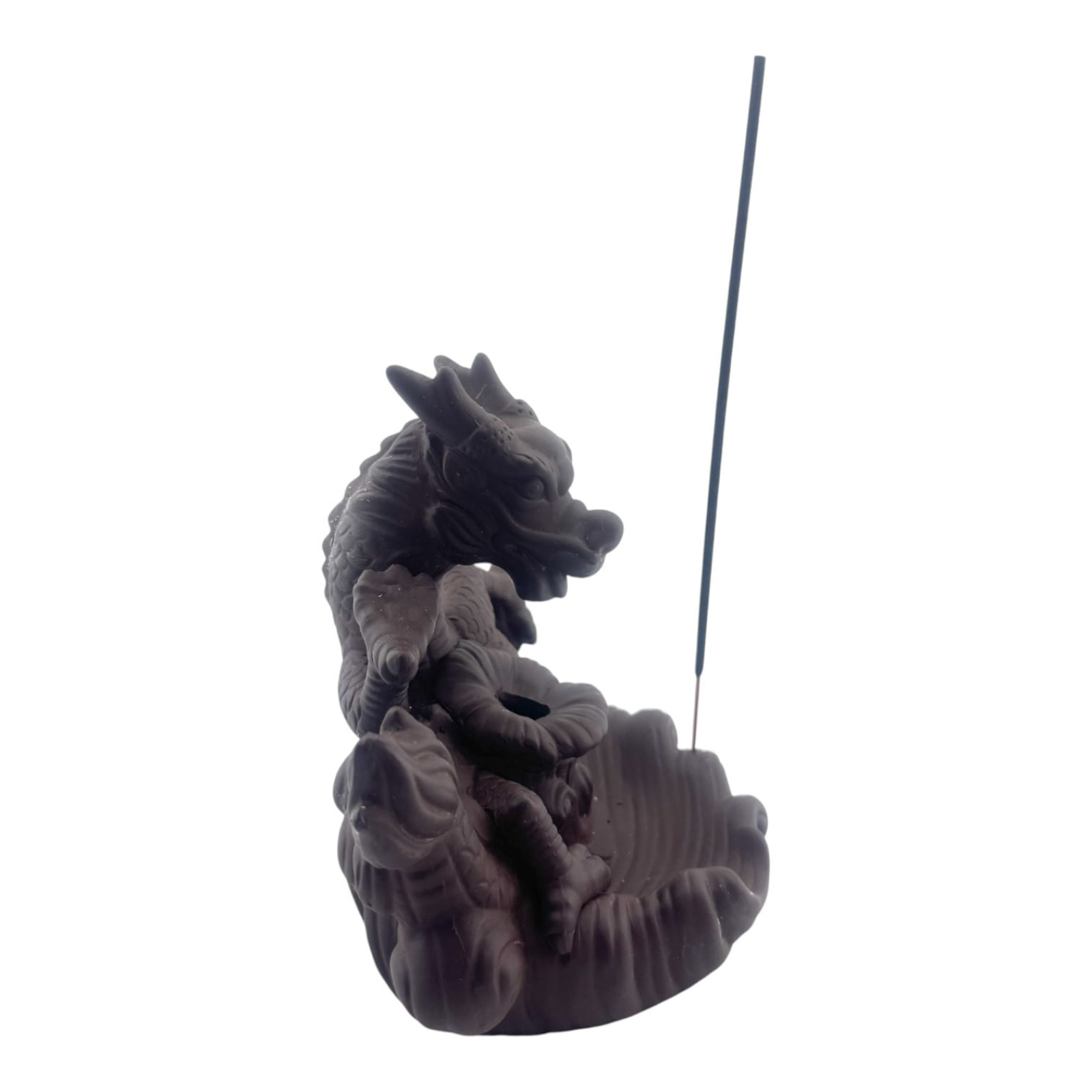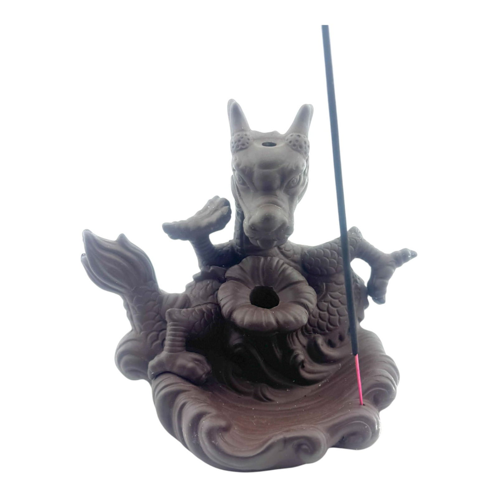 Оригінальна підставка для пахощів типу Back Flow у вигляді величного дракона. При використанні спеціальних конусів дим струмить униз, створюючи ефект "поточного туману", красиво обволікаючи фігуру.