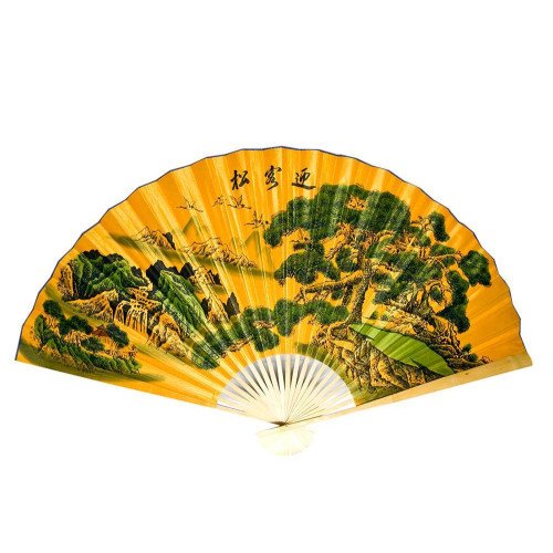 Вієр настінний "Пейзаж з журавлями, що летять, на жовтому фоні" шовк (90 см)