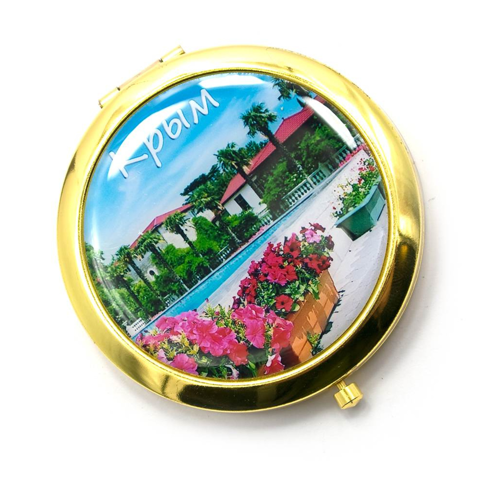 Дзеркальце косметичне "Крим" золото, Крим, косметичне дзеркало, кишенькове дзеркало, складне дзеркало, аксесуар для сумочки