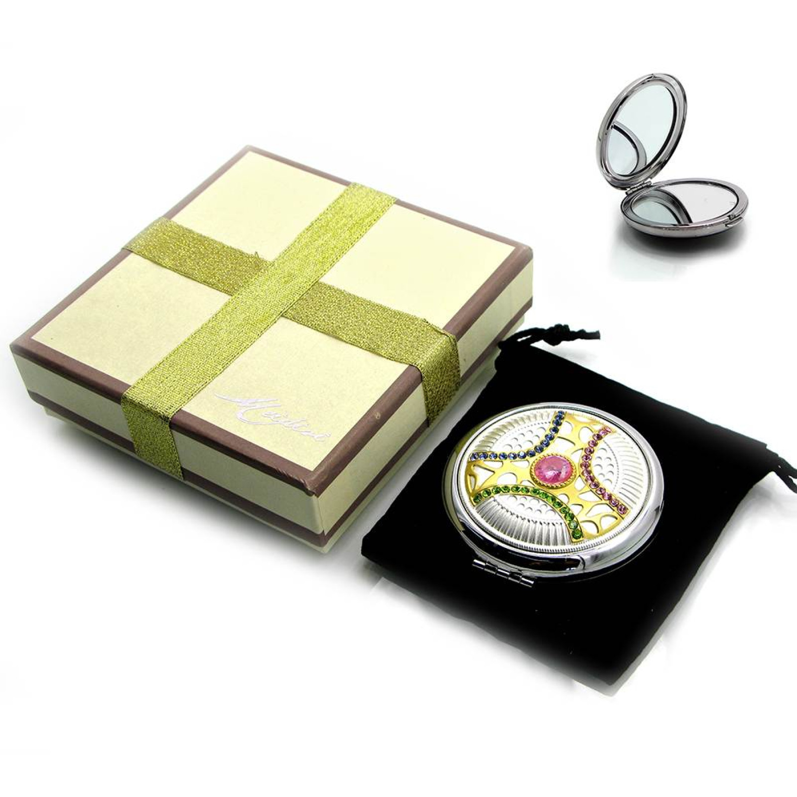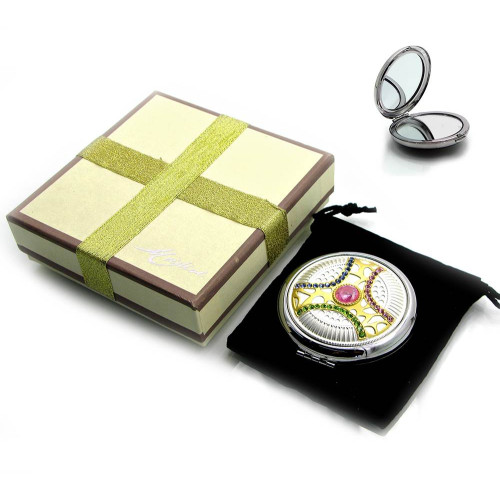 Зеркальце косметичне "Орнамент з камінням" (2) 19872, Зеркальце косметичне "Орнамент з камінням" (2) 19872 (у коробці + чохол), Орнамент з камінням
