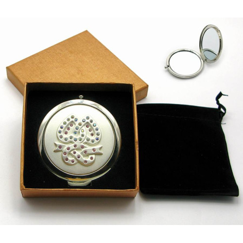 Дзеркальце косметичне з камінням "Срібло" (18530 D) (у коробці + чохол), Срібло, кишенькове дзеркало, косметичне дзеркало, аксесуар для сумки