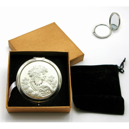 Зеркальце косметичне з камінням "Срібло" (18530 E) (у коробці + чохол)