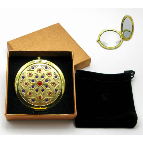 Зеркальце косметичне з камінням золоте напилення (19373 C)(у коробці + чохол)