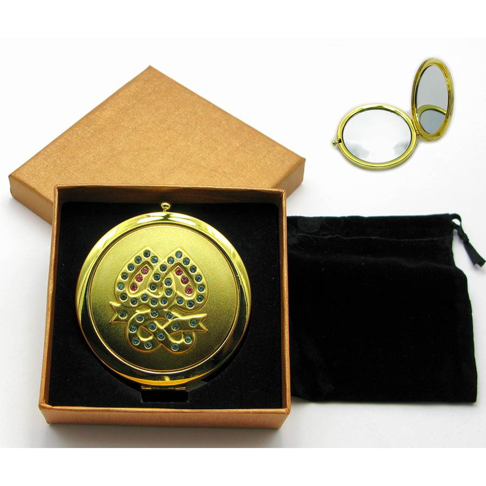 Зеркальце косметичне з камінням золоте напилення (19373 H) (у коробці + чохол)