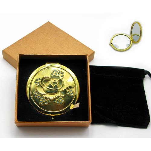 Зеркальце косметичне з камінням золоте напилення (19373 I) (у коробці + чохол)