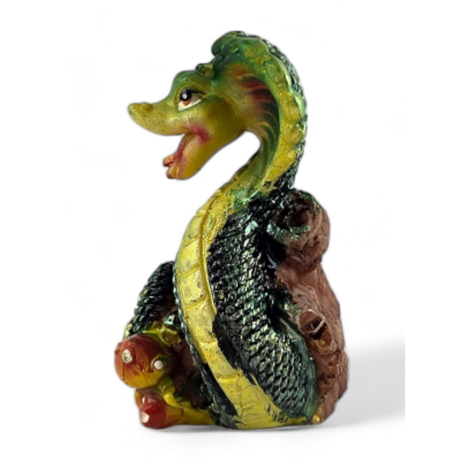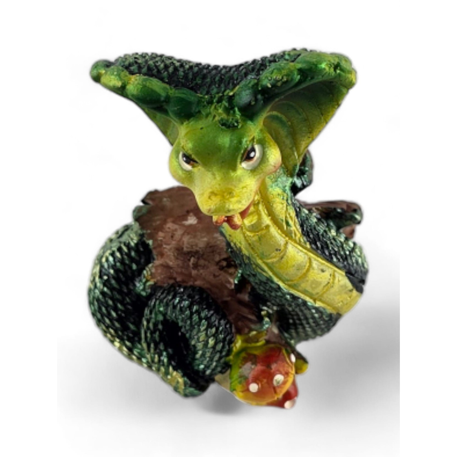 Ця статуетка зображує змію-кобру, що сидить на пні, і є символом 2025 за китайським календарем. Виконана із якісного полімерного матеріалу. Висота виробу становить 6,5 см. Змія оточена мухоморами, що надає їй оригінальності та привабливості.