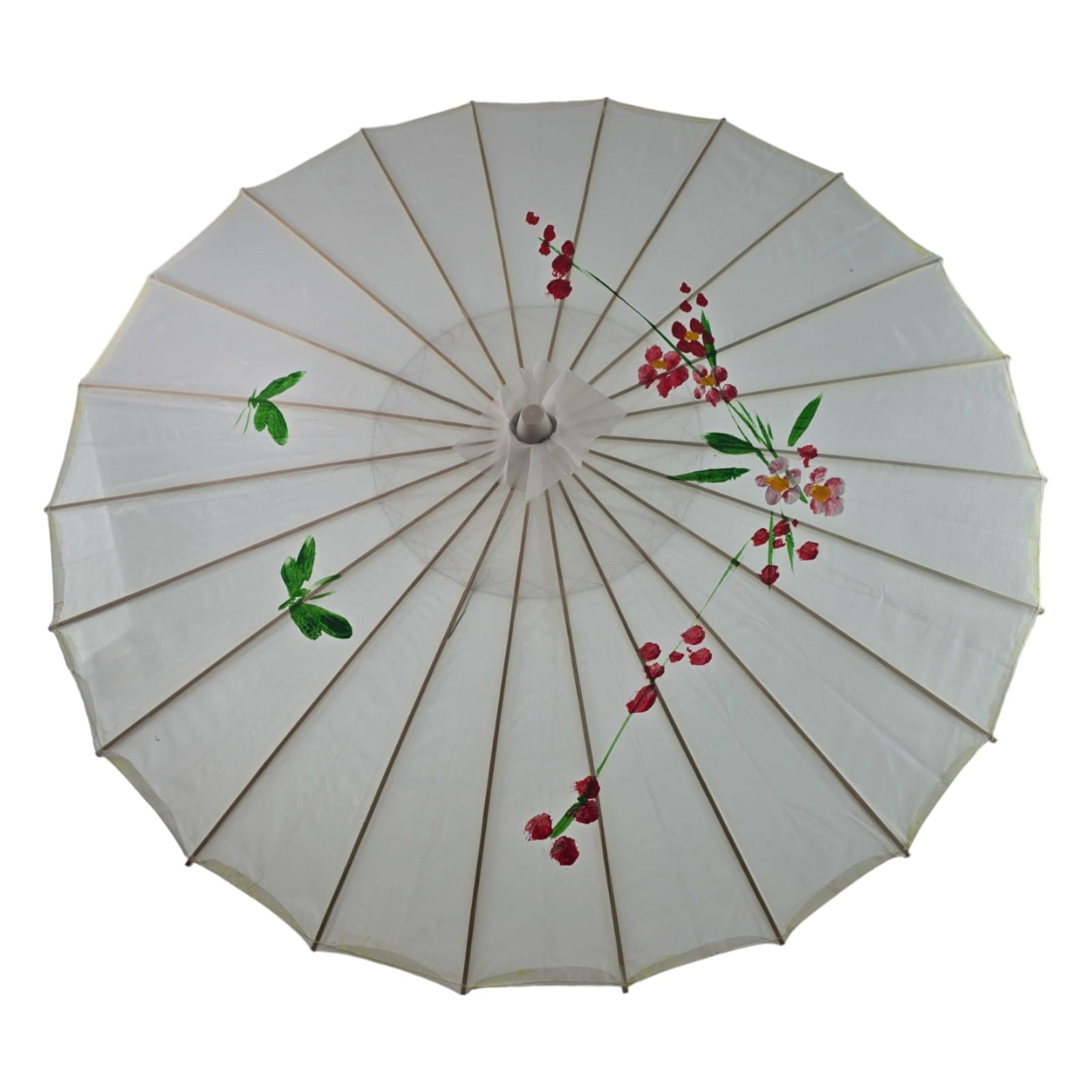 Ця дивовижна парасолька є втіленням вишуканості і традицій. Він виготовлений з легкого та міцного бамбука, який надає йому невагомості та природної краси. Покриття з натурального шовку, білого кольору, додає вишуканості та надає цій парасольці унікального зовнішнього вигляду.