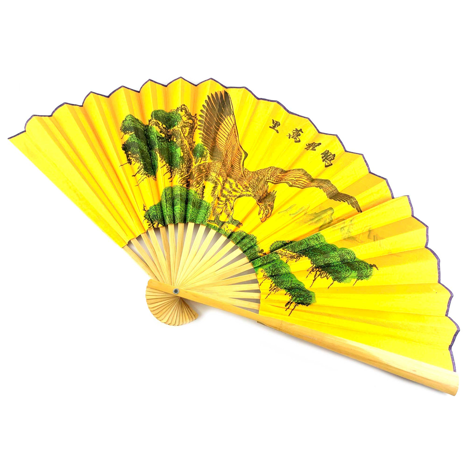 Описание Веер бамбук с шелком "Орел на желтом фоне"