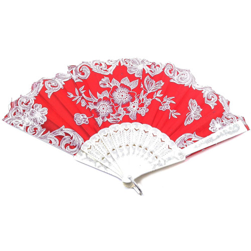 Веер "Цветы" красный (23 см)