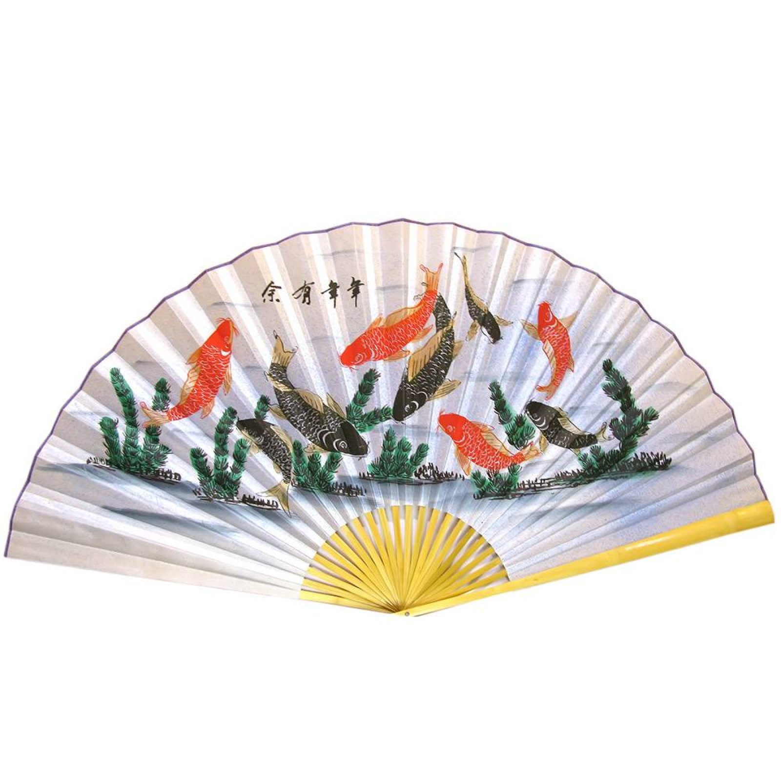 Веер настенный "9 рыб на голубом фоне" шелк (90см в развороте 156х90 см)