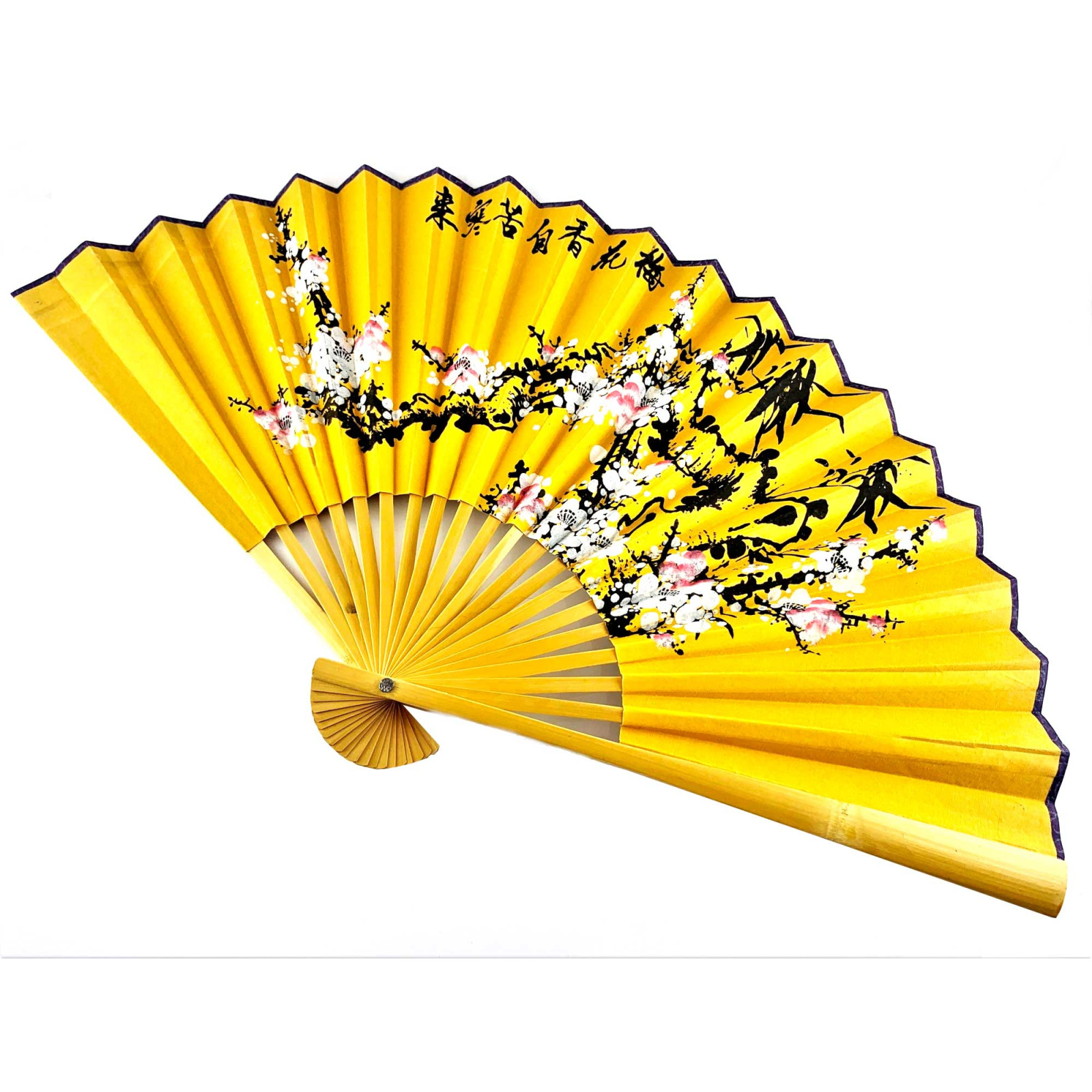 Веер из натурального бамбука, украшенный тканью с прекрасным изображением белой сакуры на желтом фоне. Этот настенный декор добавит изысканности и яркости в ваш интерьер, придавая ему атмосферу уюта и восточного очарования.