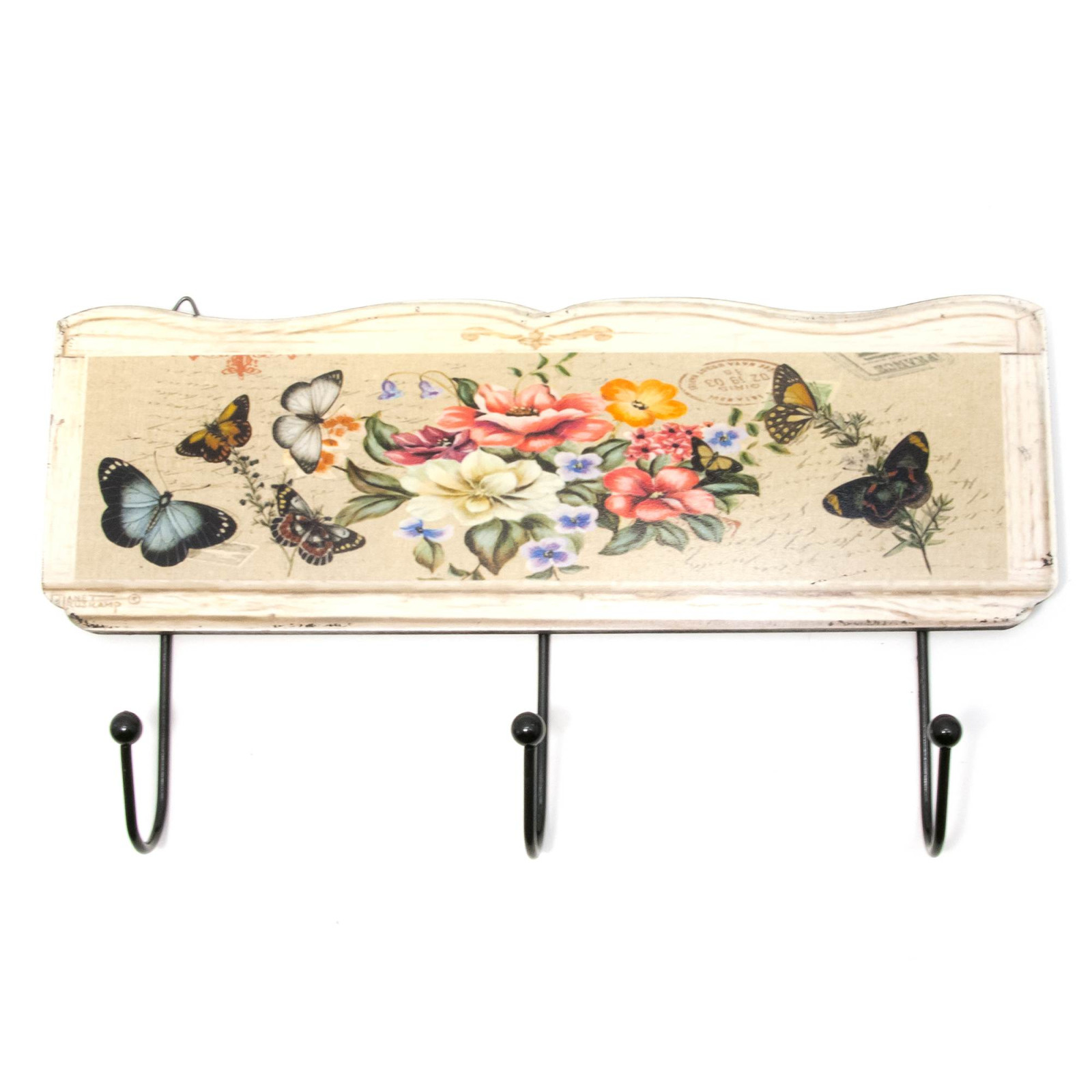 Вешалка-ключница для одежды "Цветы и Бабочки" (30х16,5х4 см)