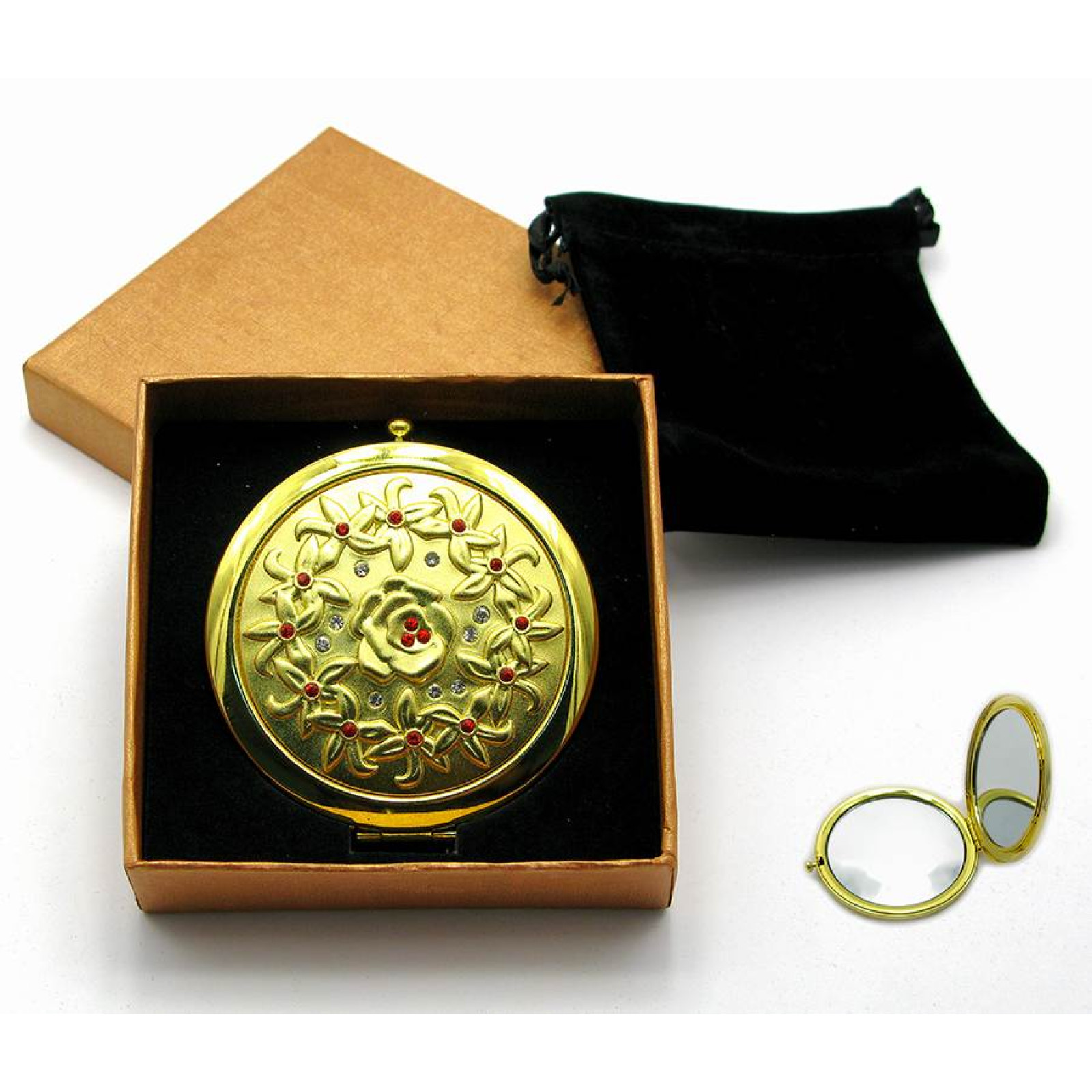 Описание Зеркальце косметическое с камнями золотое напыление (19373 B)(в коробке + чехольчик)