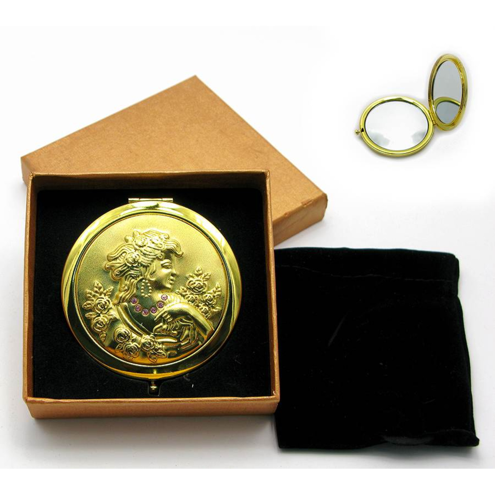 Теги: Зеркальце косметическое с камнями золотое напыление (19373 D)(в коробке + чехольчик), карманное зеркало, косметическое зеркало, аксессуар для сумки